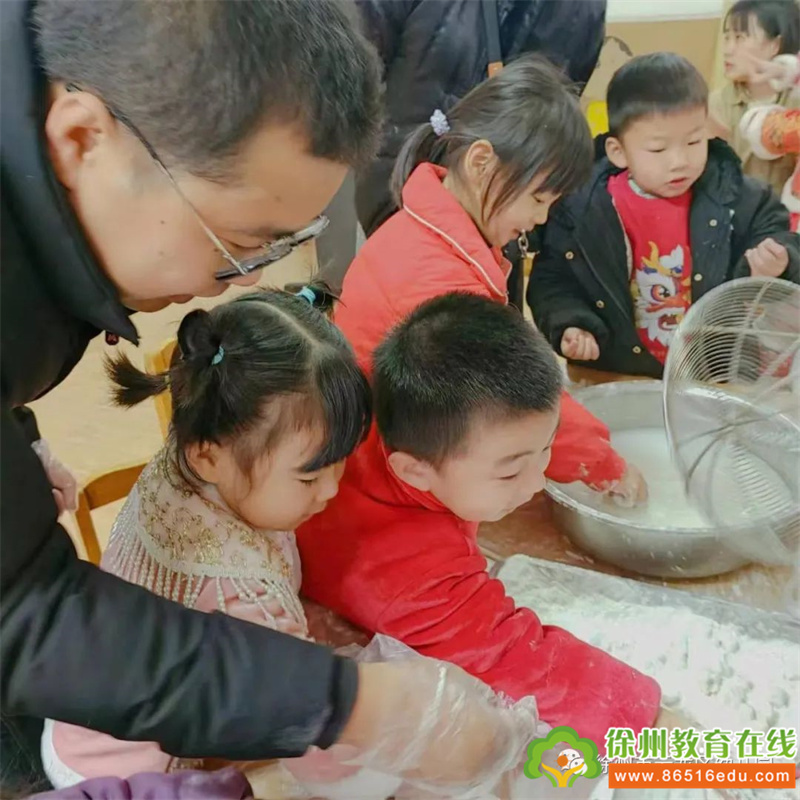 中二班家长们大显身手,教孩子们学习如何包汤圆,孩子们在家长的指导下,包的有模有样,大家一起感受包汤圆过元旦的那份快乐。