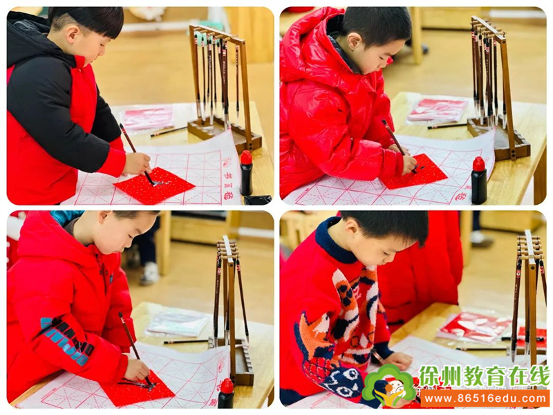 大一班宝贝在老师的指导下,兴趣盎然地一起来写“福”啦!别样的毛笔,飘“香”的墨水,孩子们专心致志,伸出“小手枪”,握住笔中间,为新的一年书写一笔浓浓的年味,沉浸在对新年的美好期待与祝福中……
