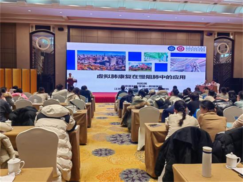 江苏省人民医院专科护士长、江苏省护理学会呼吸护理专业主任委员刘扣英作《虚拟肺康复在慢阻肺中的应用》的专题讲座