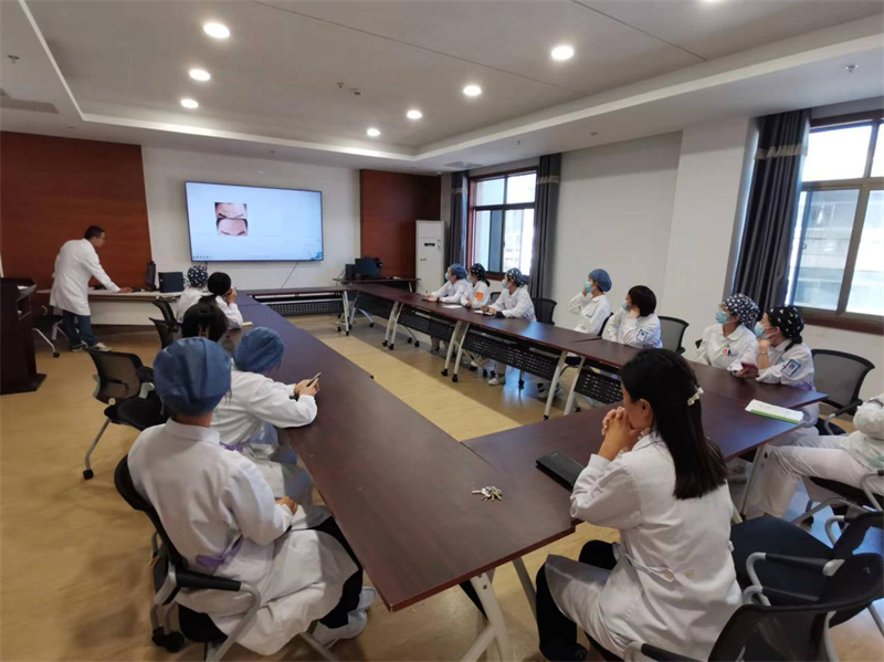 培训中,苏主任介绍了科室概况、诊疗范围、相关诊疗设施设备等,并结合工作实际举例说明,深入浅出的为大家进行了细致讲解。使导诊人员对科室诊疗有更加直观的认识,了解科室的特色诊疗项目,能够更好地为患者提供科普、解答和引导。