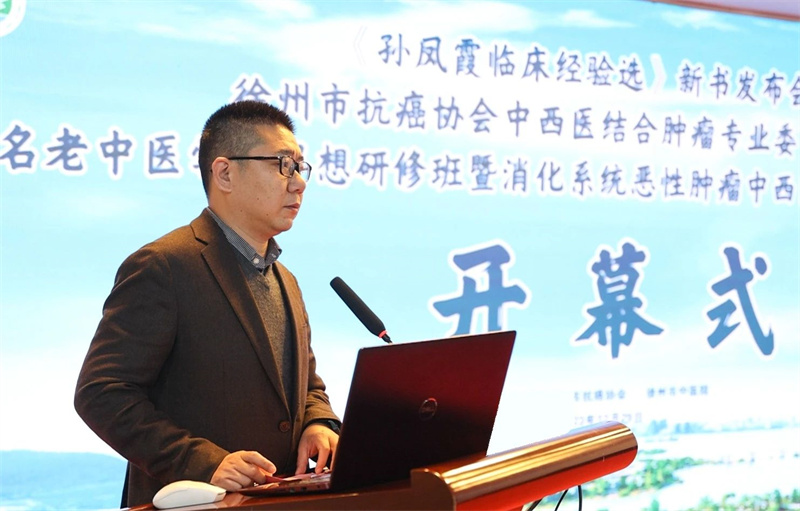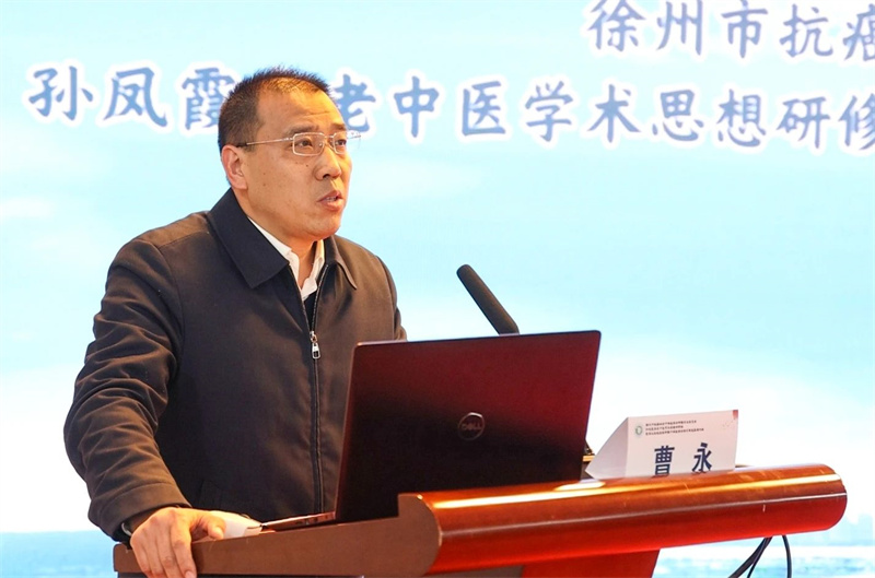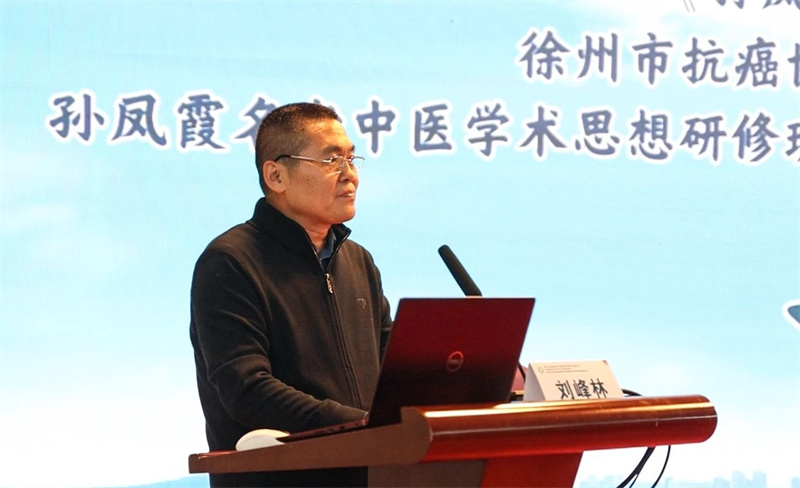徐州市卫健委党委委员、副主任曹永,徐州市中医院党委副书记、院长殷海涛,徐州市抗癌协会王伟林理事长,全国名老中医、博士生导师孙凤霞教授,人民卫生出版社李剑光主任等出席会议。孙凤霞教授学术经验继承人、徐州市中医院肿瘤二科刘峰林主任主持了会议。