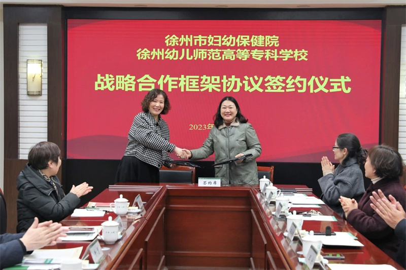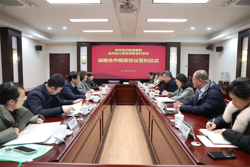 为实现医校融合“优势互补、资源共享、互惠双赢、共同发展”,创新婴幼儿托育服务与管理、早期教育等专业人才培养模式,助力徐州市托幼事业高质量发展,12月15日下午,我院与徐州幼儿师范高等专科学校签订战略合作框架协议。徐州幼儿师范高等专科学校校党委书记崔成前、副校长王宁、党政办主任李培、教务处长马中英、学前与特殊教育学院书记李春秋、院长王清风、副院长宋琛琛出席签约仪式。我院党委书记牛勇,纪委书记马志娟及相关部门负责人参加活动。