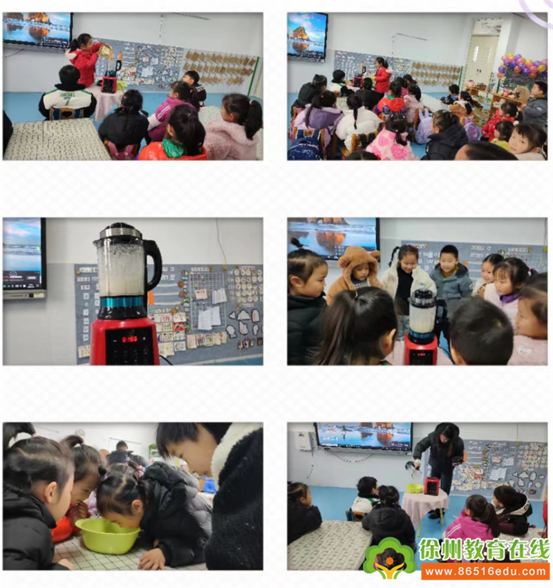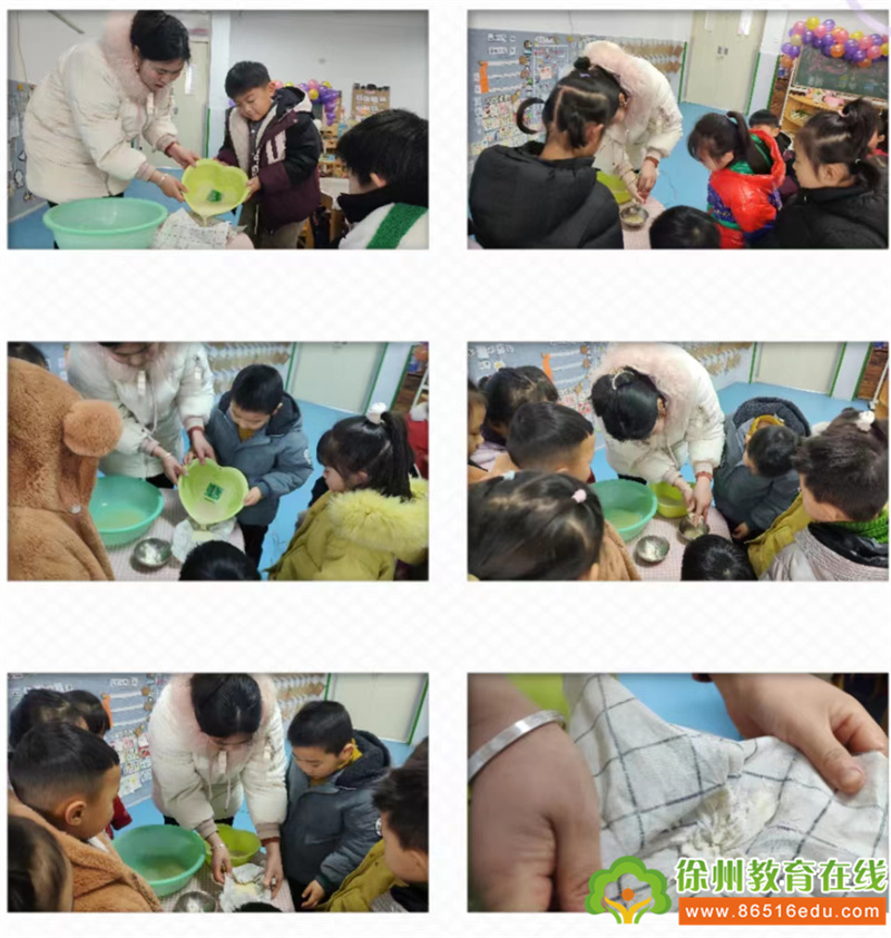 盼星星盼月亮终于盼到做粉丝的那天,我们根据视频先烫粉,然后搅粉。用漏碗漏出的粉丝放进热水后,立刻挑出放进凉水。进行尝试与实践后,粉丝终于做成功了,虽然粉丝比较短,但是第一次尝试就有成就,孩子们开心极了。