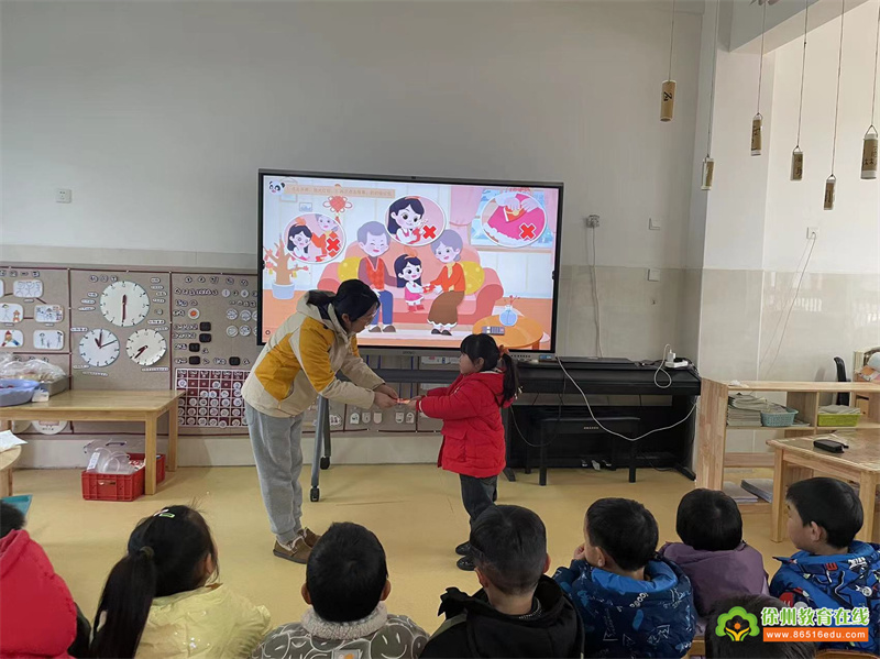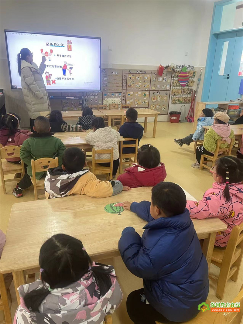 春节是家人亲友团聚的重要节日,走亲访友相互拜年也是我国的传统民俗,其中的春节拜年礼仪也是相当重要,各班教师根据孩子的年龄特点,用图片、视频、情境演练的方式,让孩子们知礼、懂礼。让我们快一起学起来吧!