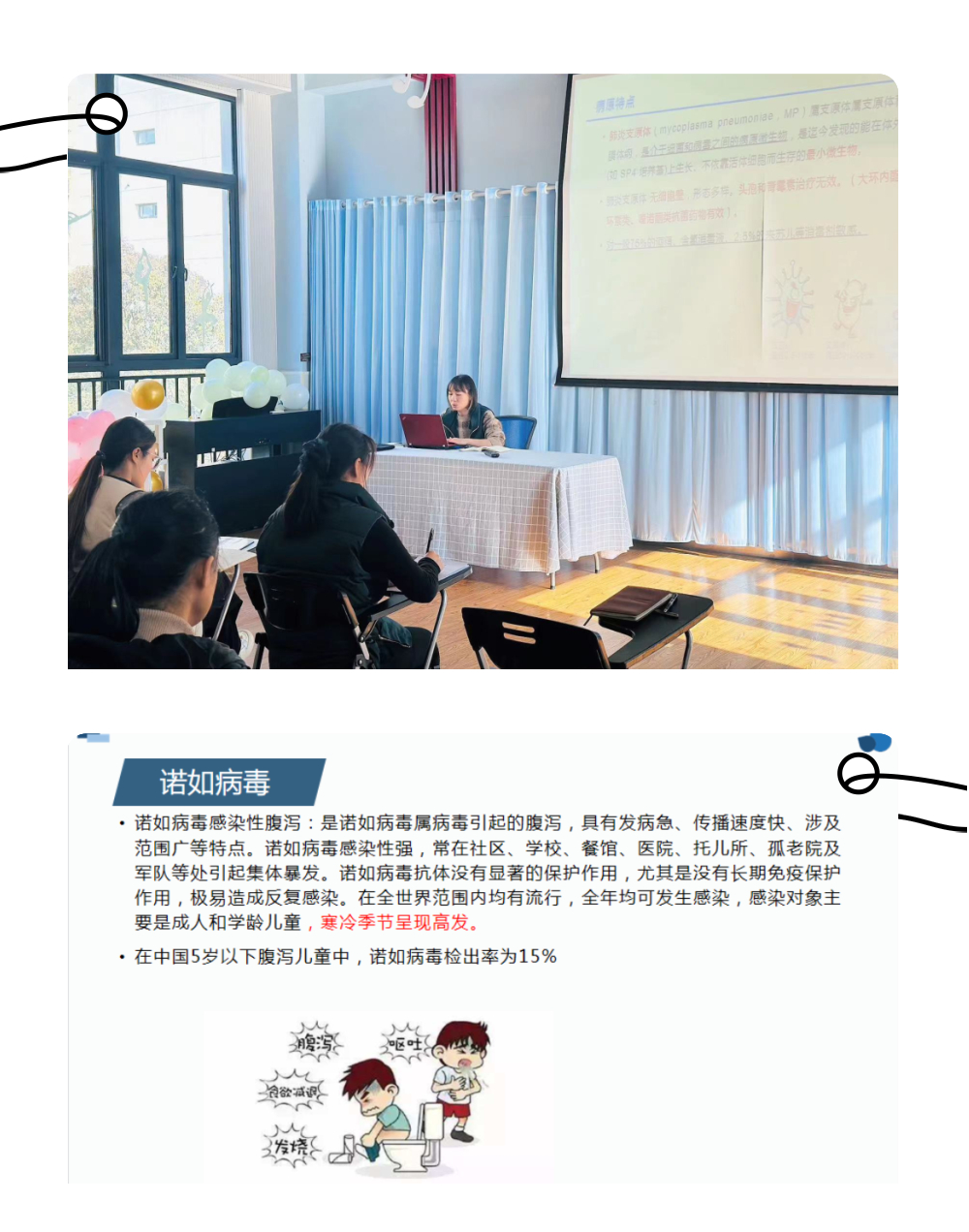 为切实做好幼儿园常见传染病的防控工作,提高教职工对传染病的预防处置及应急反应能力,保障全体师生的身心健康和生命安全。2024年1月4日华城幼儿园全体教职工进行了传染病防治专题知识培训。