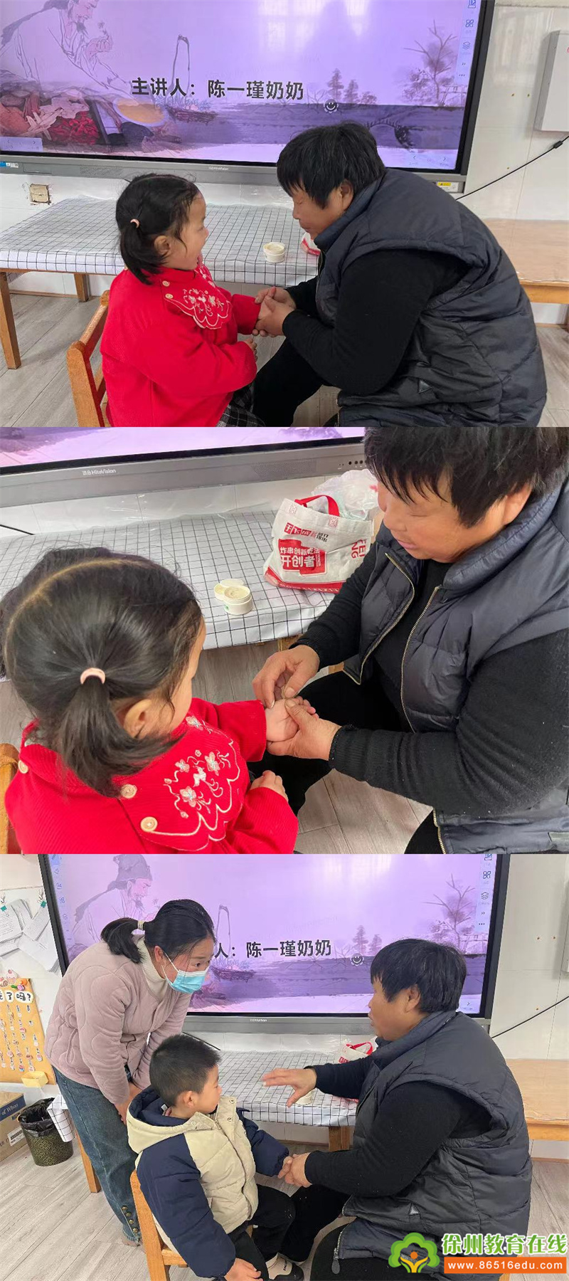 陈一瑾奶奶还带来了推拿床等道具,给大家号脉理疗,让孩子们和老师们亲身体验中医文化。