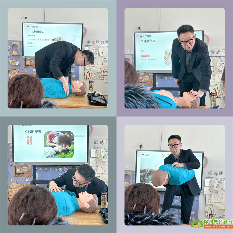 讲座现场,程讲师就运用实例的常规急救技能(心肺复苏)及常态化疫情防护知识,以合理膳食、科学运动、控烟限酒、心理健康等方面用通俗易懂的方式进行了讲解、示范,进一步提高了太山幼儿园全体职工的健康意识,形成人人关爱生命、重视健康的良好氛围。