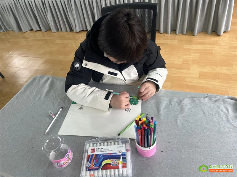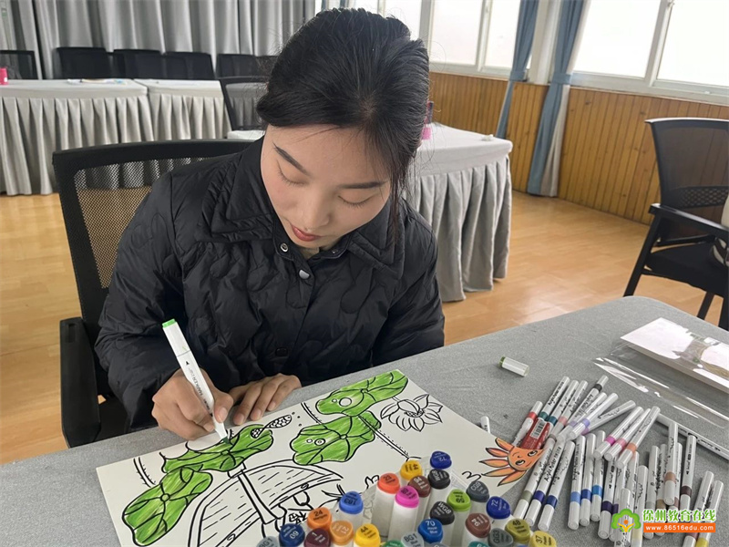 幸福在绘画中抽芽,教师们根据主题绘制、勾线、上色,人物与动物栩栩如生,场景符合主题、绚烂美丽,构图饱满、色彩鲜艳、画面美观。