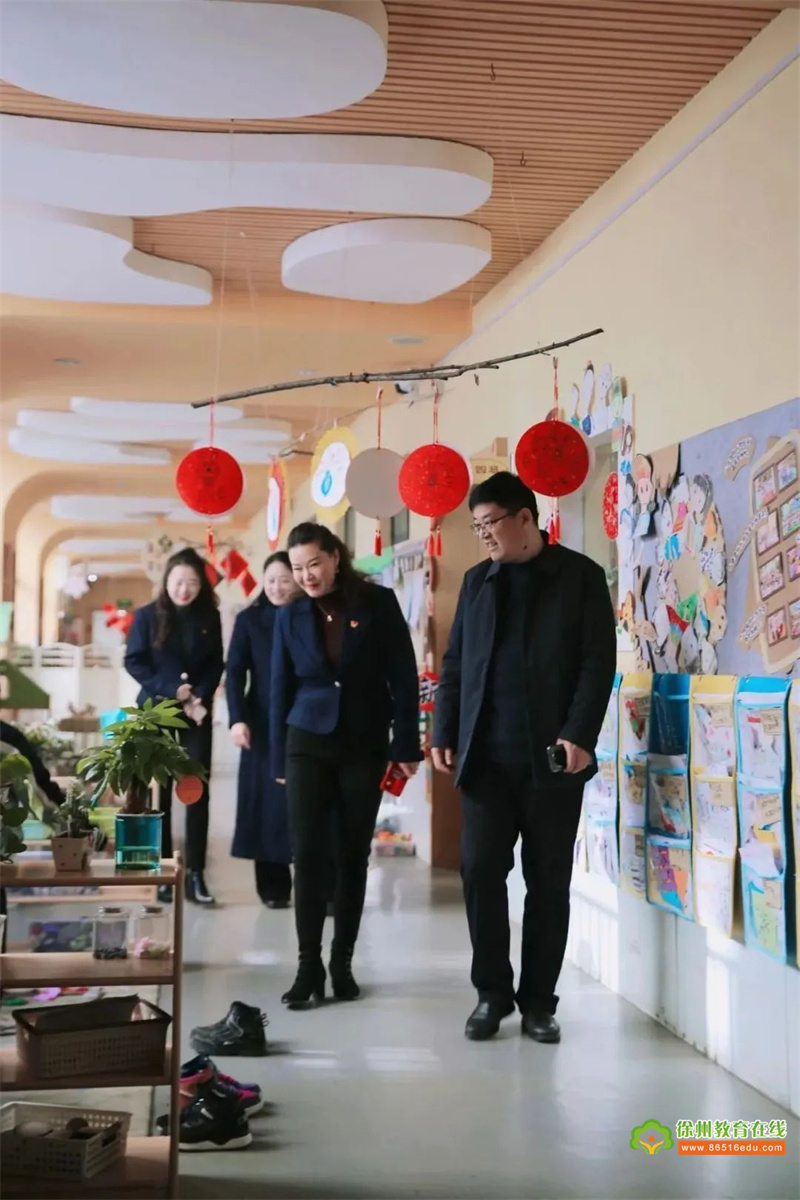 为全面贯彻徐州市《关于开展全市幼儿园规范办园行为专项督导的通知》文件精神,落实立德树人根本任务,遵循幼儿身心发展规律,切实规范办园行为,提升办园水平与保教质量,促进幼儿健康快乐成长,2024年1月10日上午,徐州市教育局吴启龙副局长和基教处韩莹主任莅临徐州市第一实验幼儿园进行“规范办园行为”督导检查。