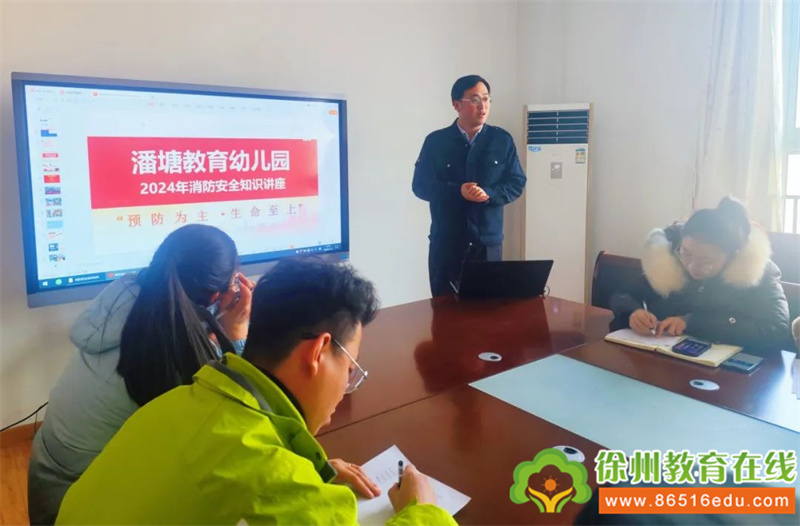 安全是生命之本,本着坚持“安全第一,预防为主”的方针,进一步做好幼儿园安全防范工作,增强教师的消防安全意识和自我保护能力,2024年1月11日,潘塘教育幼儿园特别邀请徐州社安应急许教员为老师们上了一堂易懂、易记、实用性强的消防知识培训讲座。