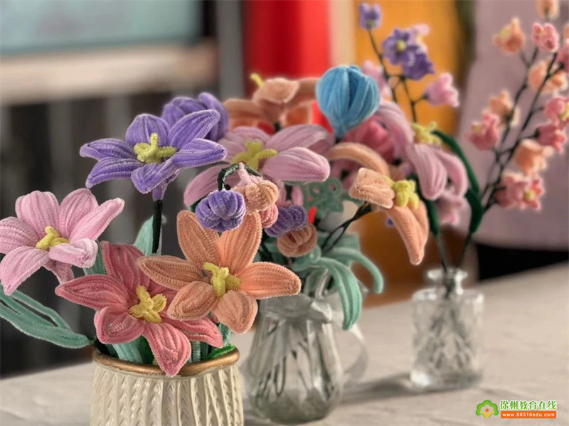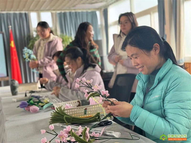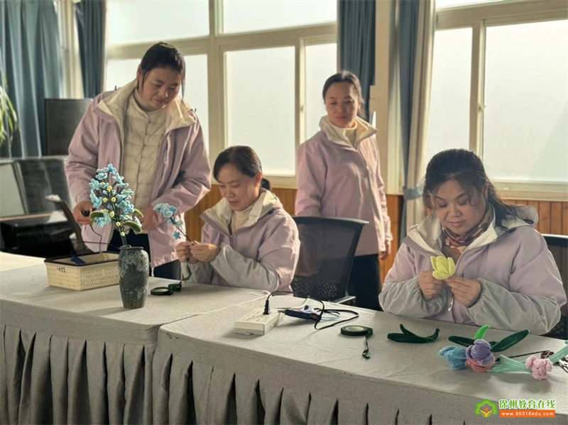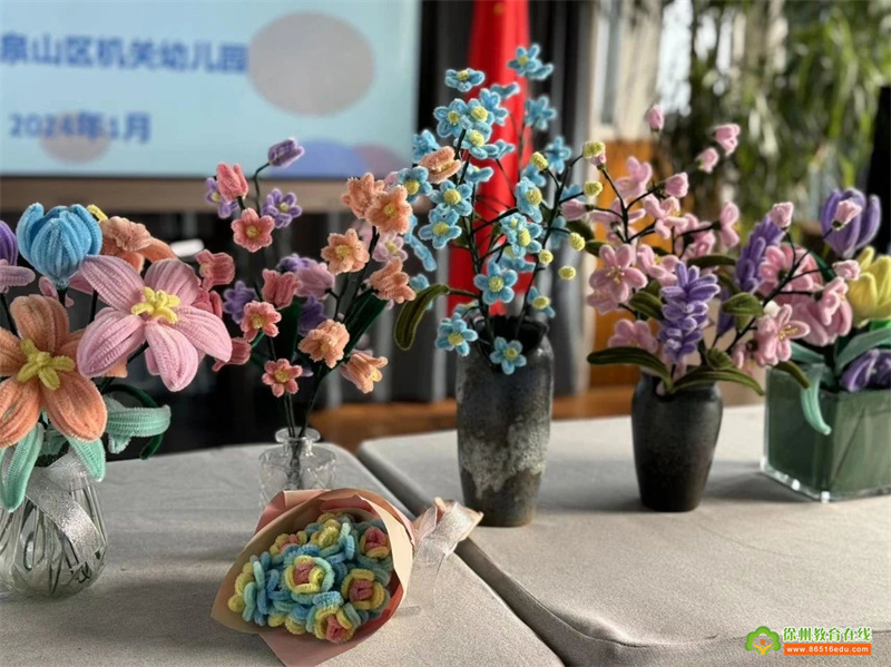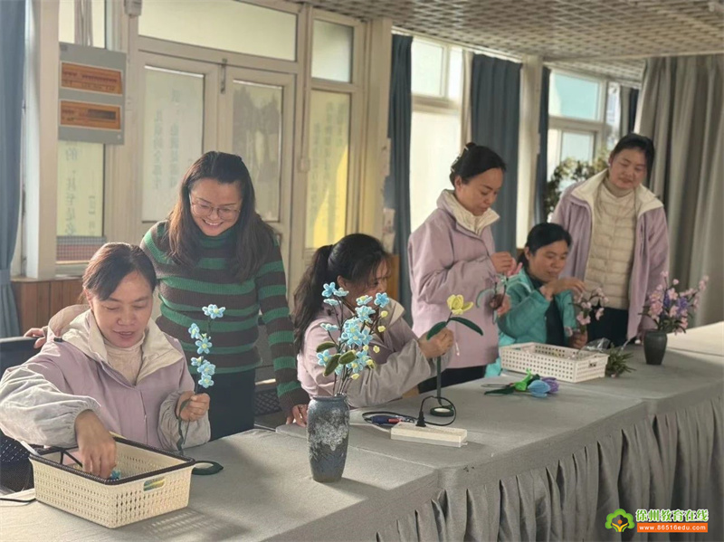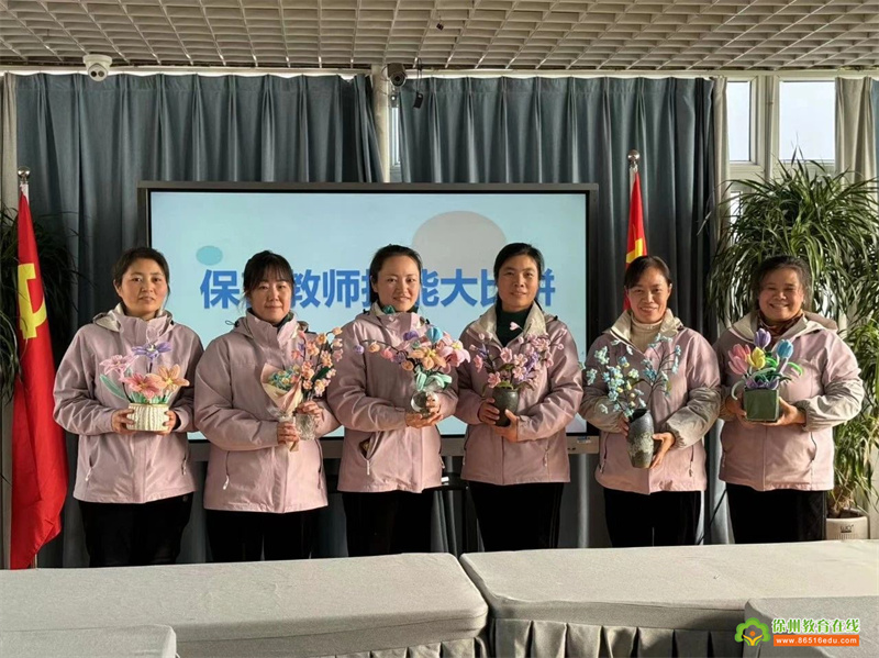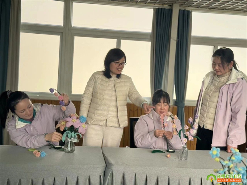 全体保育老师利用毛根、花杆、缠线等材料进行制作,制作过程中,保育员们既是参赛选手,又是合作伙伴,大家联手合作,互帮互助,彰显了我园后勤队伍的团结协作精神。