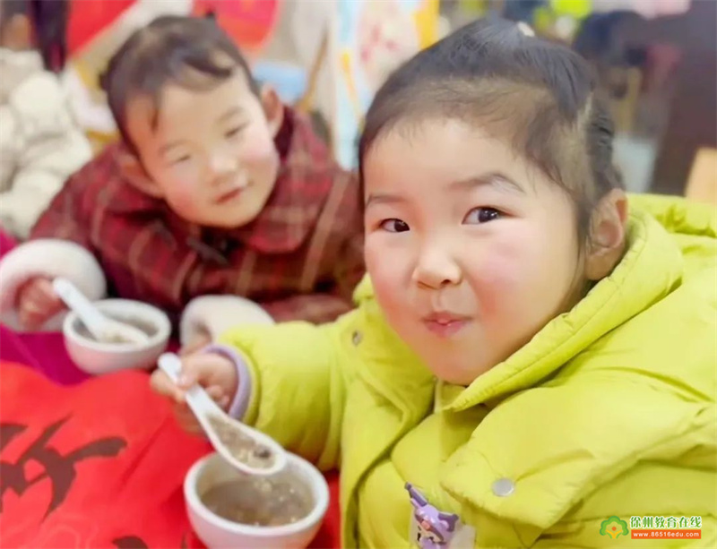 孩子们通过观看图片、视频、儿歌等形式,知道腊八节是中华民族的传统节日,过腊八意味着拉开了过年的序幕,人们在腊八节时有喝腊八粥、制腊八蒜,吃腊八面的习俗。