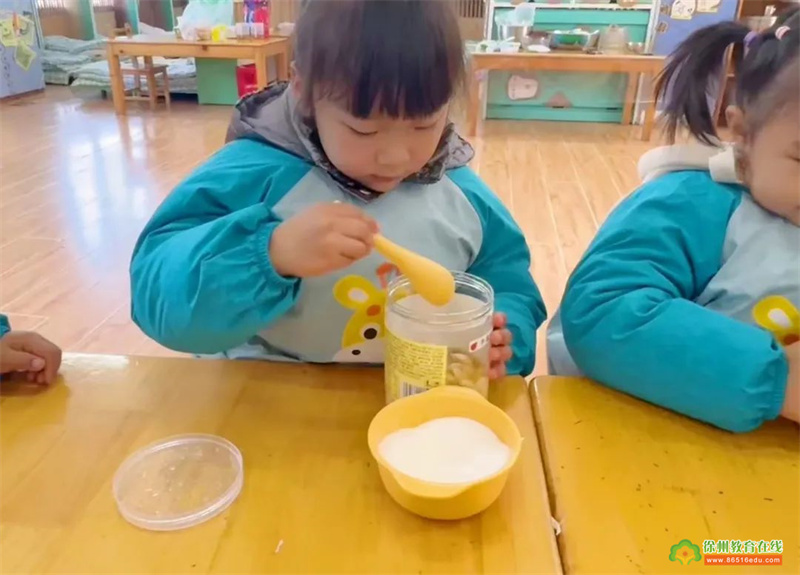 听完老师的介绍,孩子们认识了制作腊八粥所需要的各种材料。快看!小朋友们已经迫不及待啦!