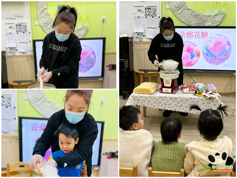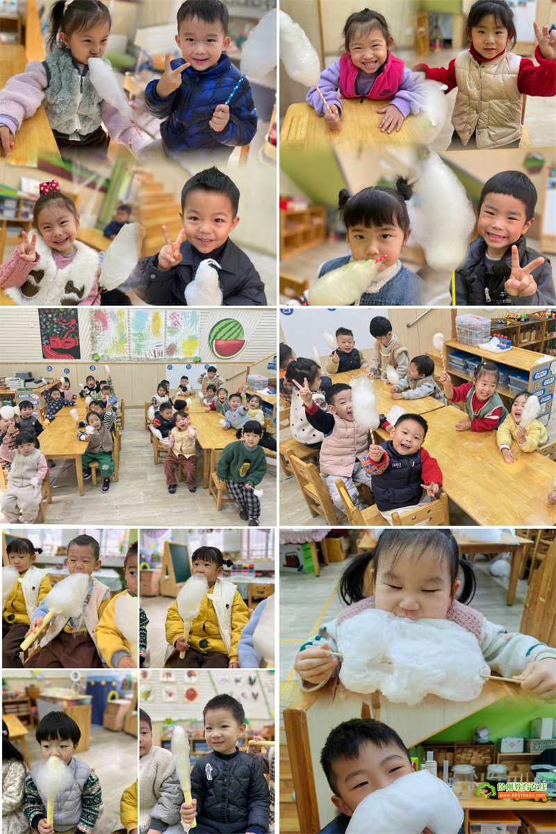 晴朗的日光铺满了幼儿园的操场,午后散步中被孩子的发现吸引,“看!白云”顺着小手指的方向,朵朵白云飘动于蓝天之上,孩子们惊喜于自己的发现,迫不及待与同伴分享自己的想法。“这个白云看起来软软的,好像棉花糖”“我能吃到它”“啊呜”孩子们沉浸在造型多样的棉花糖里,纷纷说好想吃棉花糖,于是我们开启了一场奇妙的棉花糖之旅......