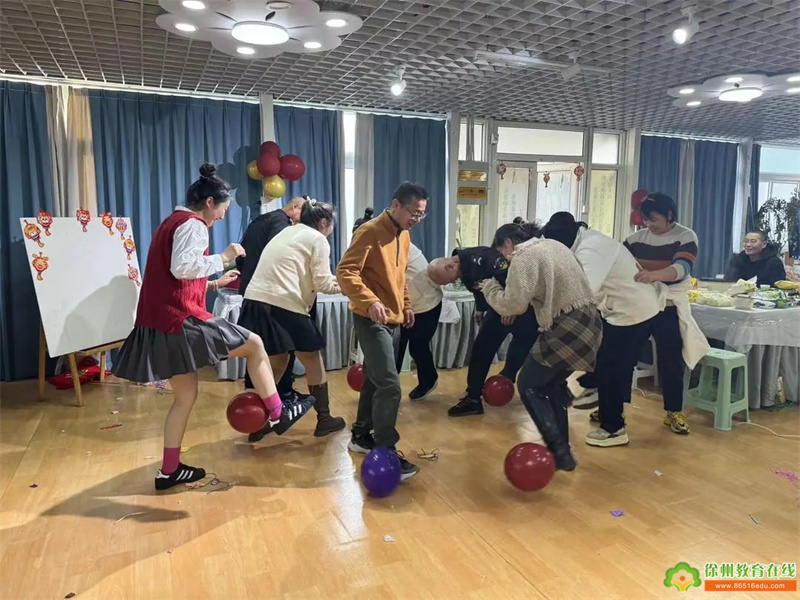 老去又逢新岁月春来更有好花枝这是奋斗的学期、这是充实的学期这是成长的学期、这更是幸福的学期在欢声笑语中泉山区机关幼儿园迎来了新春联欢活动就以喜悦做桨、携手为舟扬帆驶向新的一年!新春会场充满了浓浓的节日氛围彩环气球、祝福签到老师们惊叹连连、笑意盈盈每一份倾情和用心都触动心底最柔软的地方听!主持人逗笑开幕看!开场舞引燃全场年轻的老师们摇身一变成了广场舞的中流砥柱土到极致就是潮!扭动的身姿让在场的所有人捧腹大笑如果说快乐如花瓣倾洒那么园长就是陪伴和守护泉机幼满园鲜花最辛苦、最可爱的人裴园长倾情致辞,回望过去、展望未来期盼着每一位教师在新的一年能有新的成长!幸福满溢中包饺子大赛开展得如火如荼搓面团、擀面皮、包肉馅年轻年长的老师们齐上阵包出的饺子更是形状各异、各有千秋歌声总与微笑紧紧相连老师们按照年代分组00后、90后、80后......彼此的合唱唱出年代的风云目光缱绻会心一笑这是只属于我们的心照不宣惊喜大奖将气氛再次推向高潮老师们屏息期待这一刻又变成了满心欢喜的孩子游戏是孩子们最重要的活动也是令我们重回年轻最好的依凭益智动脑的抓鸭子反应迅捷的石头剪刀布噼噼啪啪刺激欢乐的踩气球都令我们笑意盎然、焕然新生!岁序更迭、华章日新春秋代序、日月峥嵘在这新旧交替的好时节泉山区机关幼儿园全体教职员工恭祝各位同僚、家长们岁月常欢愉、年年常胜意安康顺遂、新年快乐!