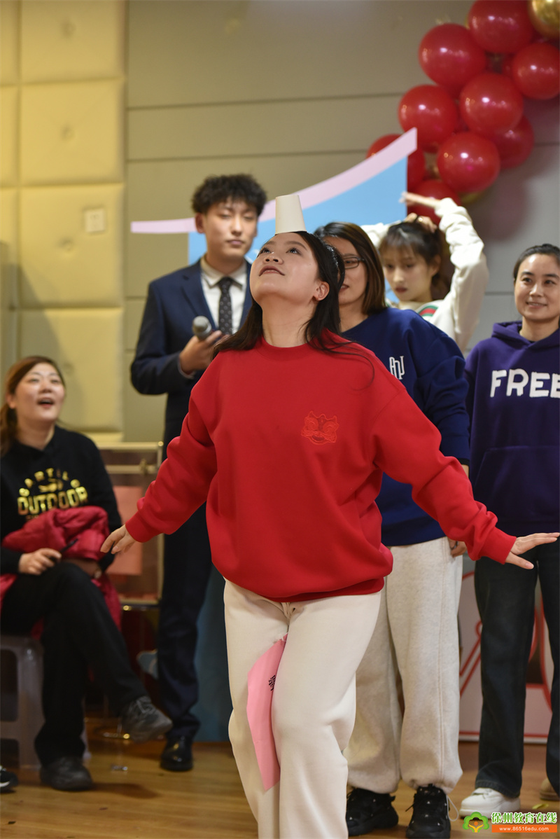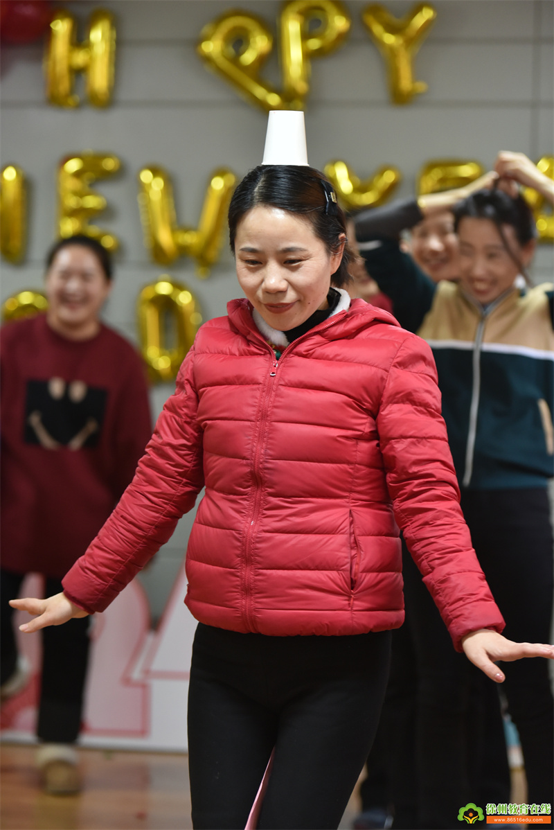 联欢会还设置了有趣的游戏环节,教职工们积极参与,通过团队合作完成了一系列富有挑战性的游戏任务,现场气氛热烈欢快。