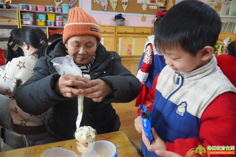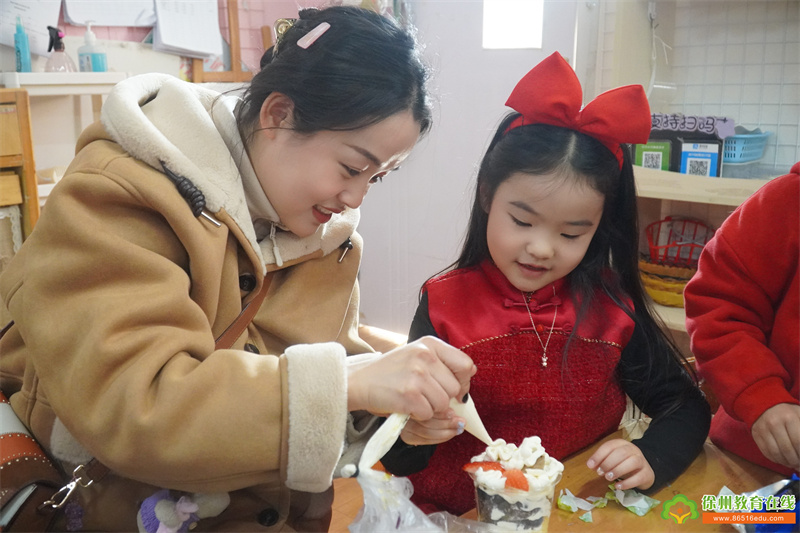 浓浓蛋糕香,快乐亲子情。精彩的活动观摩后,家长们和孩子们一起制作蛋糕。只见孩子们变身成了“小小蛋糕师”,拿着专用的工具,像模像样的挤奶油,摆水果,每个角落都充满着家长和孩子们的欢声笑语。一个个精致的蛋糕,一幅幅温馨浪漫的幸福画面,在班级里尽情绽放......