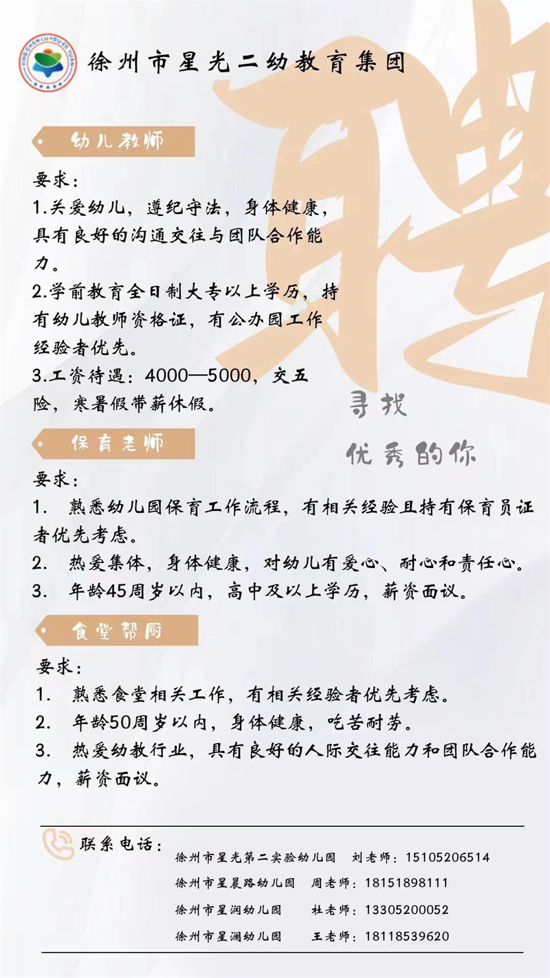 3.热爱幼教行业,具有良好的人际交往能力和团队合作能力,薪资面议。