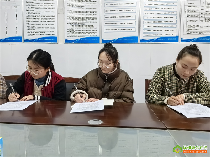 为保障幼儿安全,建立教师安全意识和教师职业道德建设的保障机制和约束机制,增强师德建设的实效性,会议最后,太山幼儿园全体教职工在姚园长的带领下认真解读并签署了《大许镇太山幼儿园教师安全责任状》。