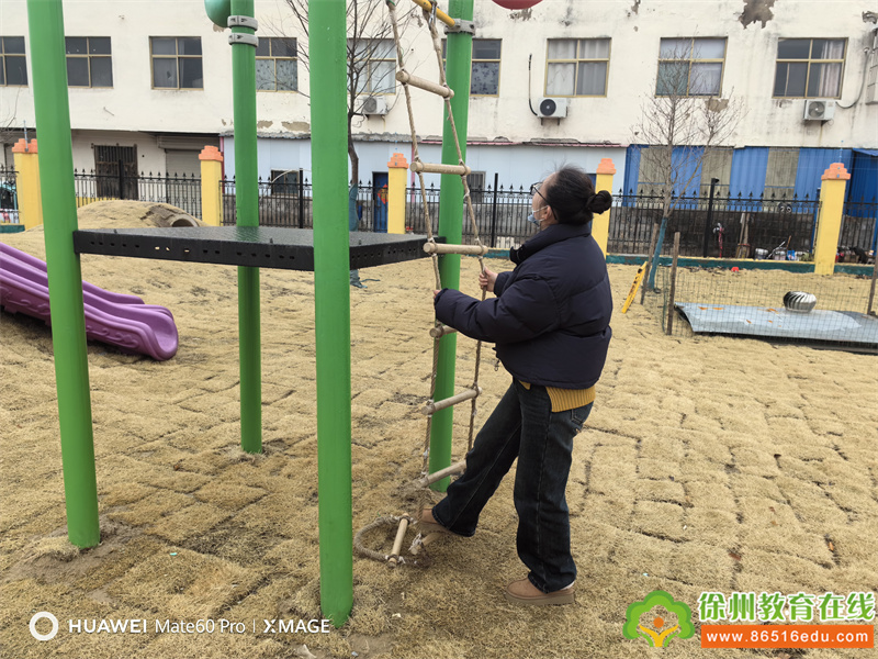 为保证幼儿户外活动安全有序开展,预防意外发生,安全小组对全园所有户外大型玩具以及体育器械设备进行认真、细致的排查。查看玩具上是否有螺丝松动,是否有尖锐露出的地方,做到及时发现及时整改,确保孩子们返园后能安全地进行游戏。