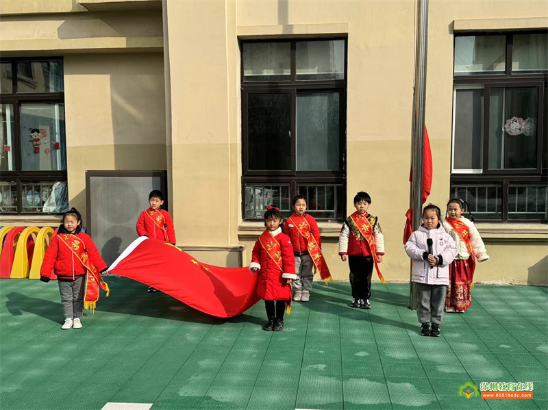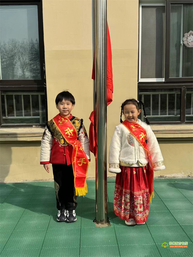 久违的操场,熟悉的音乐,开学第一次升旗仪式开始啦!迎着朝阳,在蓝天白云的映衬下,升起新学期的第一面五星红旗。