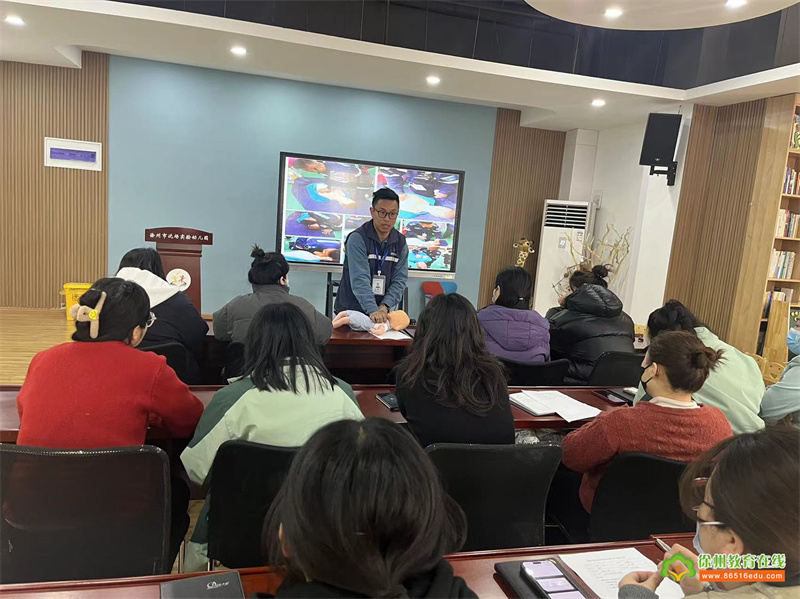安全是幼儿园工作的重中之重,为了进一步保障幼儿的健康成长,提高全员教职工的安全专业知识和能力,增强安全防范意识,我园特邀优秀讲师——胡青龙对我园教职工进行应急救护的相关知识技能培训。