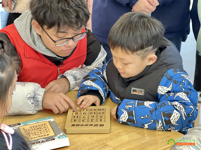 数学不仅是一门学科,更是一种思考方式。孩子们通过动手操作“数字华容道”、“汉诺塔”、“九曲连环”、“魔方秀起来”、“心中有‘数’情有‘独’钟”、“重力五子棋”等数学趣味游戏,高校的学生们耐心地向小朋友们解说游戏规则,不断进行示范与讲解,一边纠错一边鼓励。小朋友们在高校学生们的悉心陪同下,踊跃思考,积极实践,对数学产生了浓厚的兴趣和完成游戏的获得感。