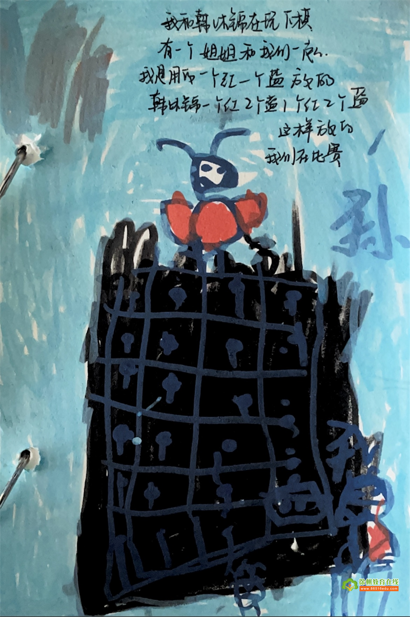 我今天和韩沐锦玩了重力五子棋的游戏,有一个姐姐和我们一起,我是用的一个红色(珠子)一个蓝色(珠子)放上去的,韩沐锦是一个红色两个蓝色、一个红两个蓝这样放的,我们还一起比赛了。