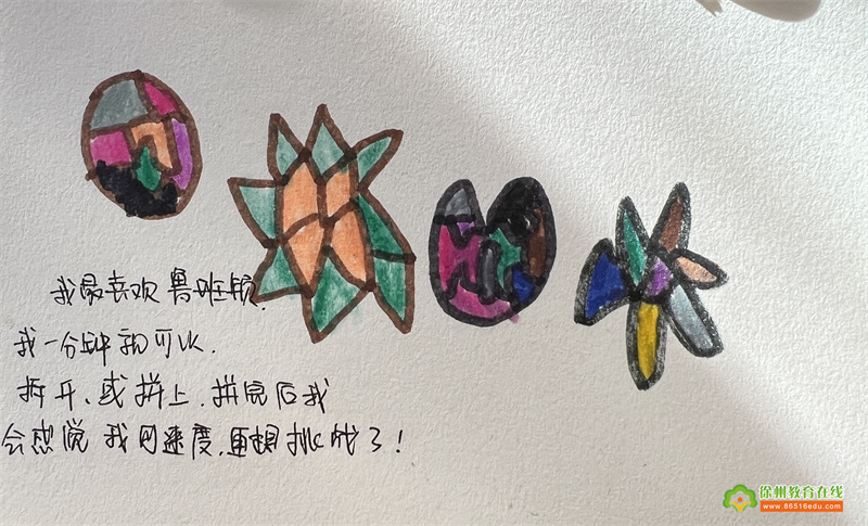 我最喜欢鲁班锁,我一分钟就可以拆开或拼上,拼完后我会感觉我的速度,更想挑战了。