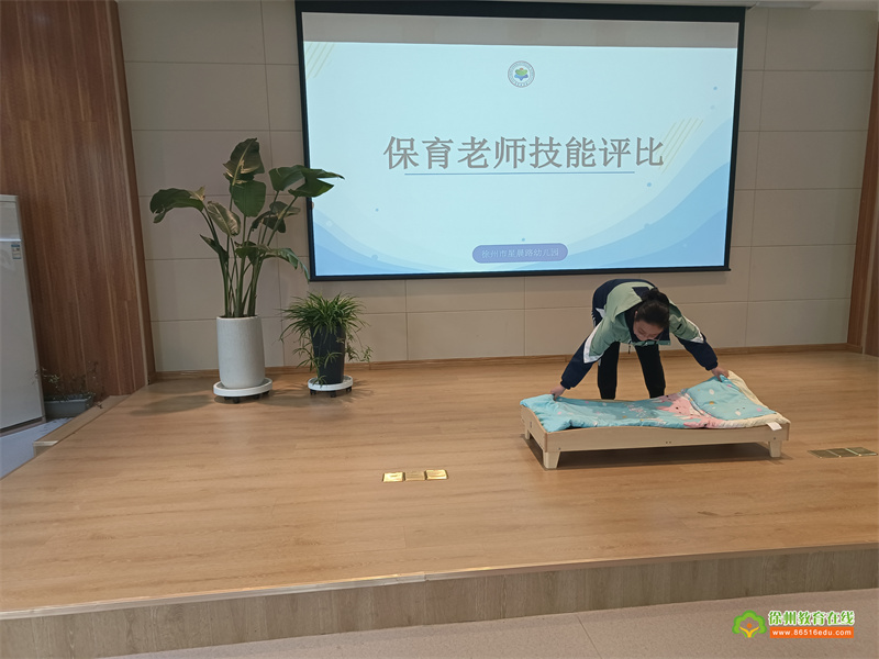 床铺整理虽是一件小事,但叠得美观整齐、床铺平整无皱褶、速度快,同时排查床铺隐患却并不简单。在展示过程中保育老师动作娴熟细致,“抖、甩、叠、铺”的动作一气呵成,点点滴滴都彰显着她们的职业精神和敬业的态度。