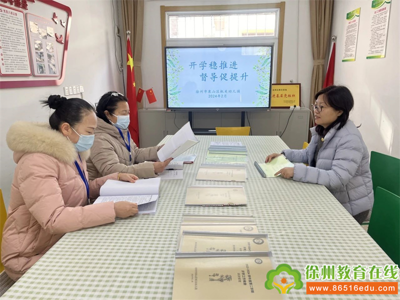 为规范提升幼儿园各项常规工作开展,确保幼儿园春季开学工作顺利进行,2024年2月26日,泉山区第三责任督学组蒋晓雯、吴海燕两位督学莅临泉山区机关幼儿园针对校园安全、开学准备、教学常规等各项工作进行了全方位督导。