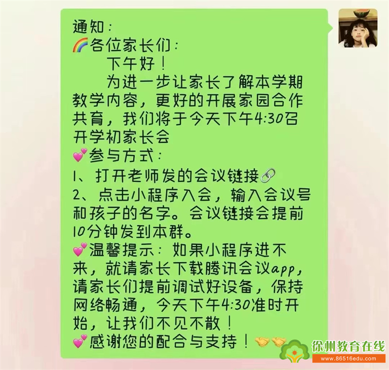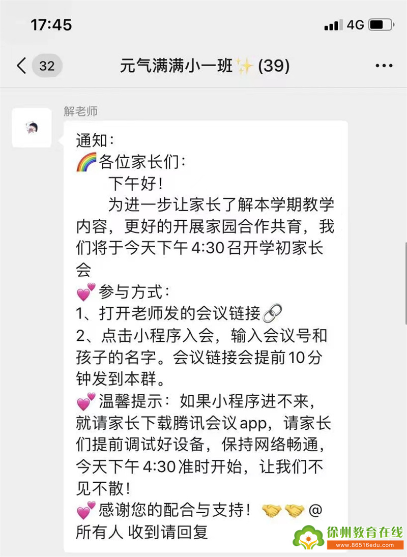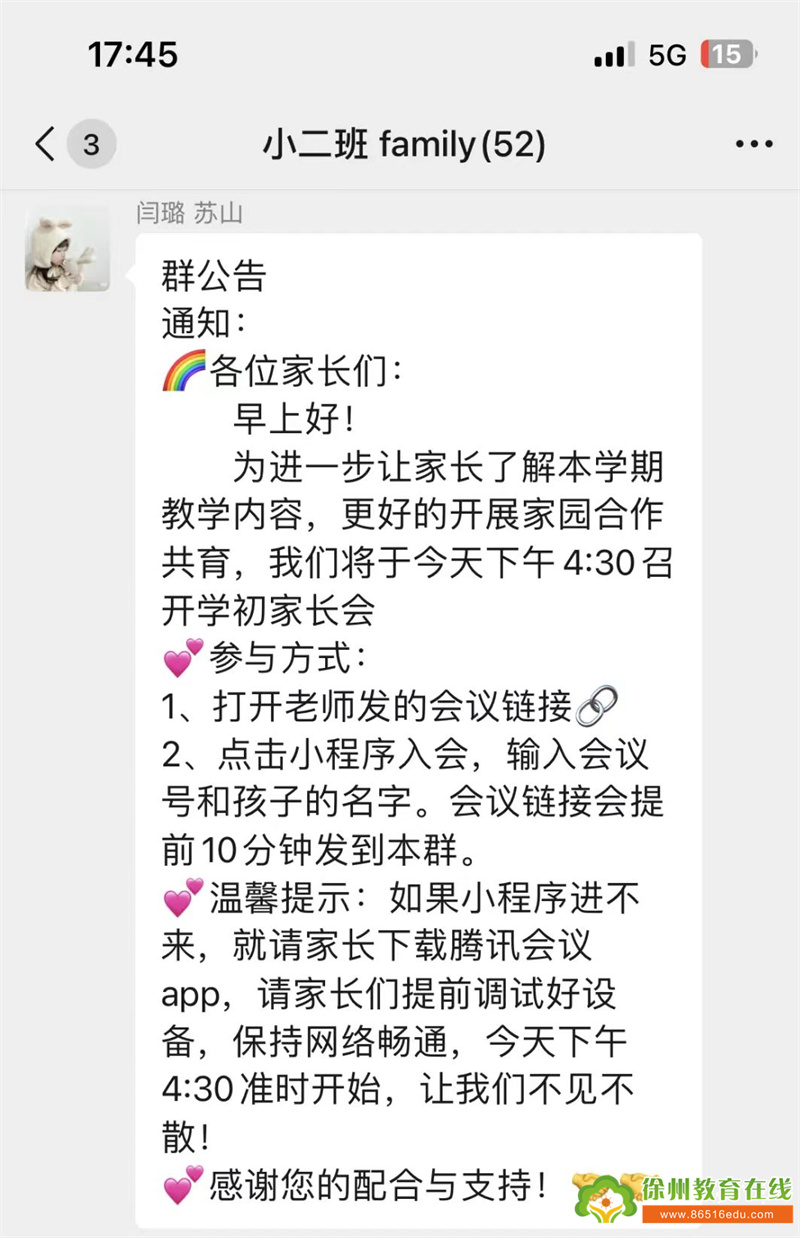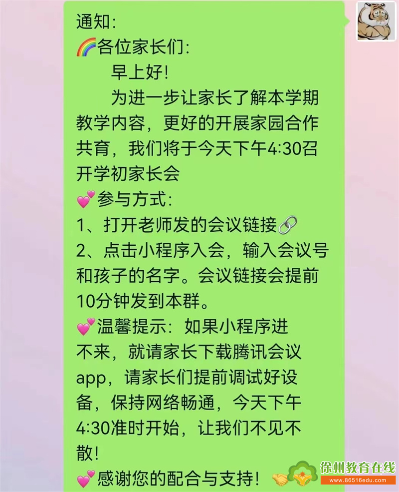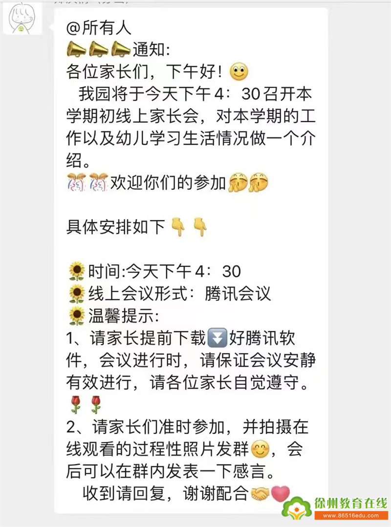 为了线上家长会的顺利进行,教师们认真构思会议内容,为此次家长会做了充分的准备。老师们通过班级群向家长们发出了线上家长会的邀请通知,暖心提醒家长们提前安排好时间,准时参加会议。