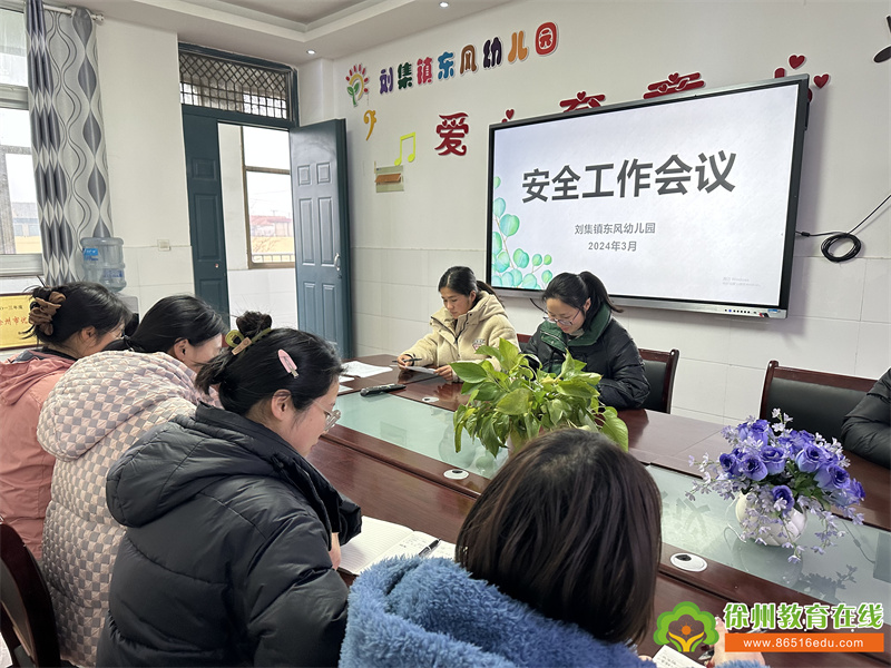 安全是生命之本,是工作之本,是幼儿园开展各项活动的基本保障。为切实抓好幼儿园安全防范工作,进一步加强安全教育和管理工作,严格落实幼儿园安全稳定主体责任,筑牢校园安全防线,保障师幼生命安全,2024年3月5日,刘集镇东风幼儿园召开安全工作会议,全体教职工参加会议。