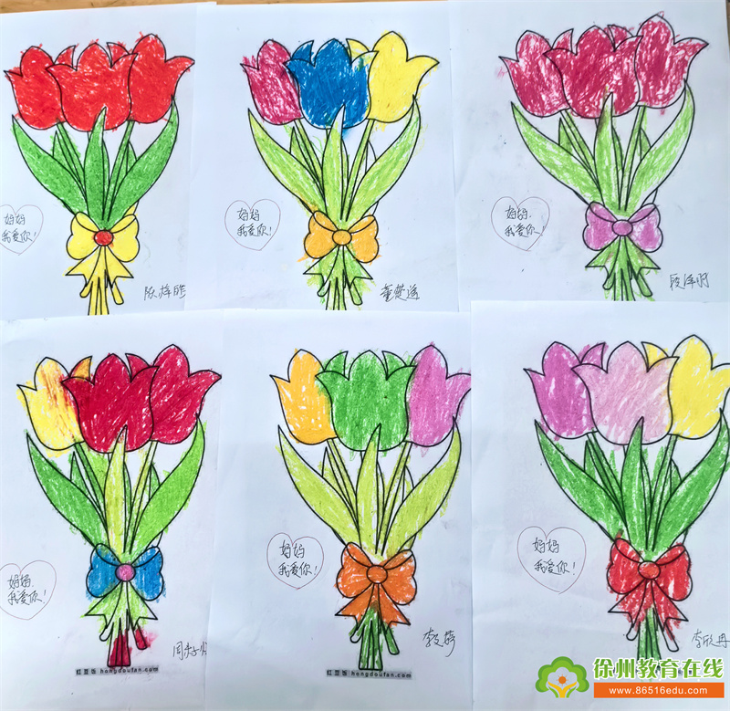 在活动上,老师给幼儿讲解三八妇女节的来历,让幼儿知道三月八日是国际妇女节,是妈妈、奶奶、姥姥、姑姑、阿姨们的节日。看呀!老师正在将准备好的气球放进孩子们的衣服里,通过气球来模拟孩子们肚子中的“小宝宝”呢,让每个孩子都能亲身感受到妈妈孕育生命的辛苦和不易!接着,我们为了庆祝妈妈的节日,孩子们亲手为妈妈画了一幅郁金香花束,用此来表达对妈妈的爱。