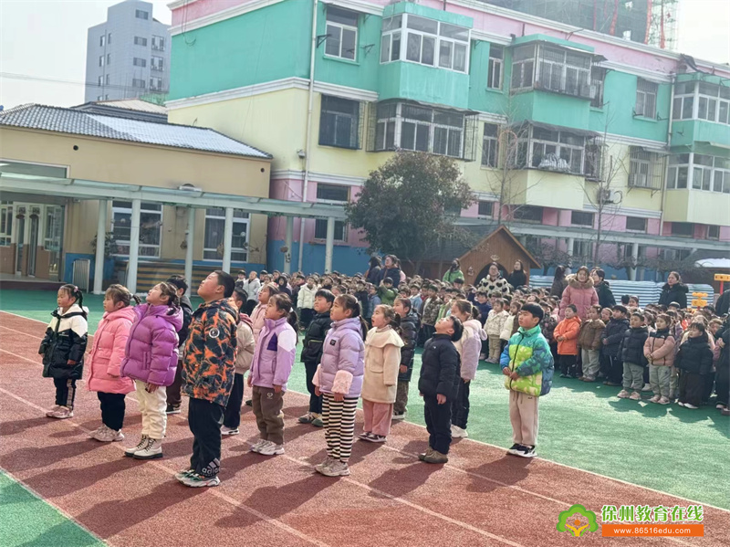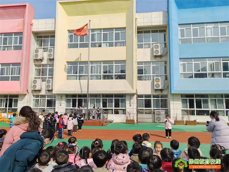 升国旗 奏国歌在嘹亮的国歌声中,老师和小朋友们行注目礼,注视着五星红旗冉冉升起。如同旭日朝阳,承载着活力与希望。在他们幼小的心中悄悄种下了一颗爱国的种子。新的学期新的征程,相信孩子们在爱的浇灌下,一定能健康快乐地成长。新的学期里,相信小朋友们都能突破自我,收获满满的希望。