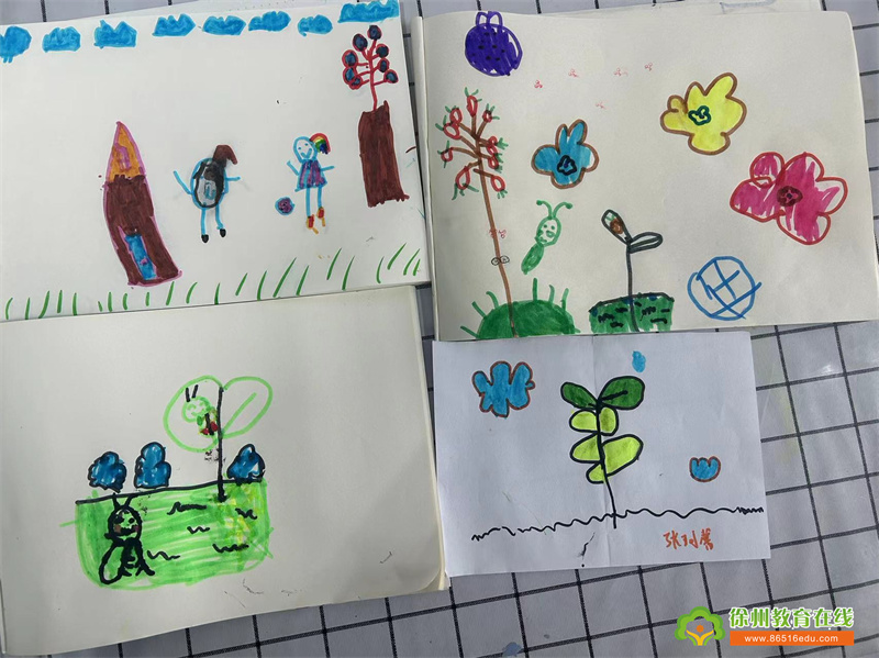 万千沉睡在地下、在树皮中的昆虫,被一声声雷鸣唤醒。浑身的慵懒、消极都被这一“惊”而悉数消散。春雷始鸣,气温回升,昆虫萌动,小昆虫们也逐渐苏醒,舒展着自己的身体,来和大家见面啦!孩子们用画笔诠释了自己心中的“惊蛰”美景,诠释一种别样的春暖花开。