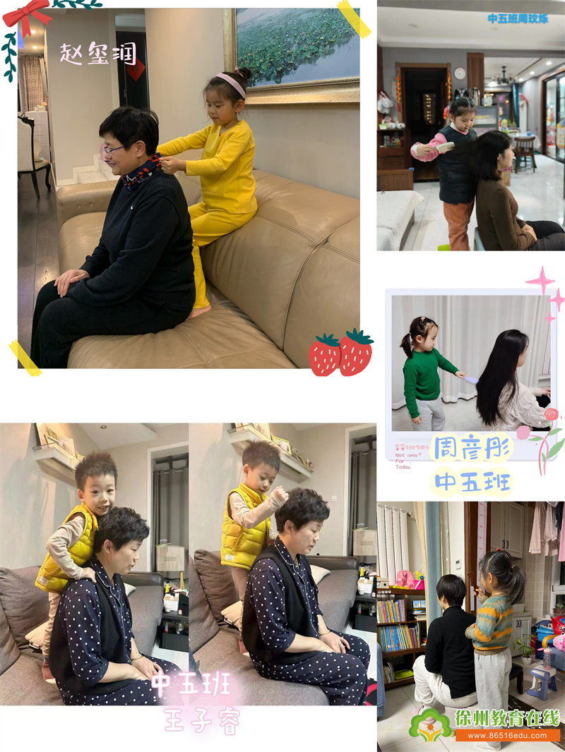 孩子们还用小小的行动,体验并表达满满的爱意,将爱落实在点滴的生活之中,例如帮助身边的“她”:妈妈、奶奶、外婆、老师等分担力所能及的家务、捏捏肩……