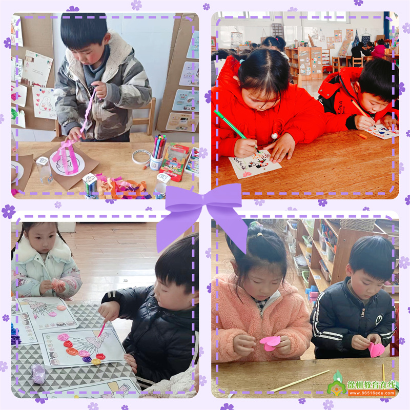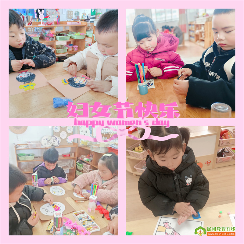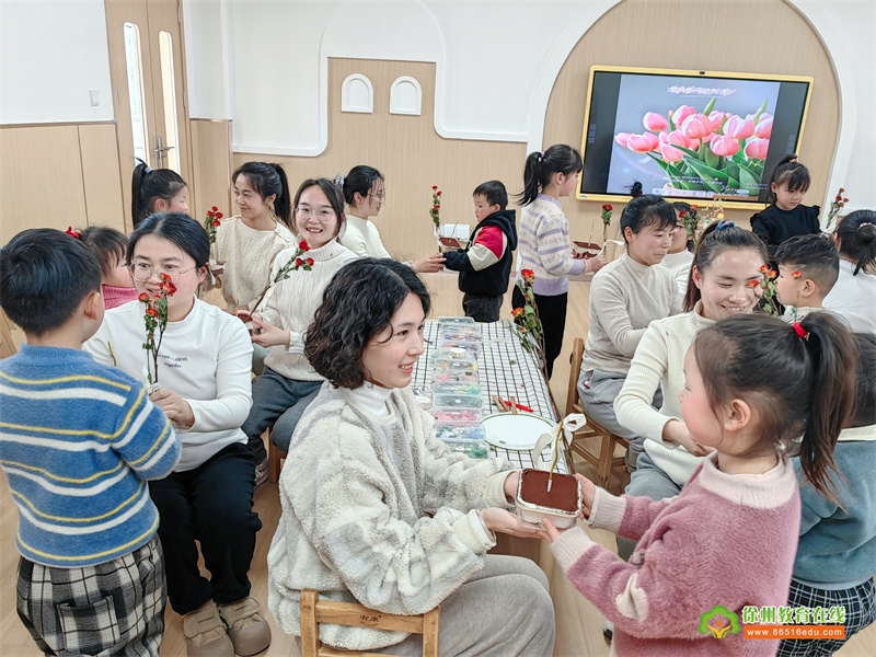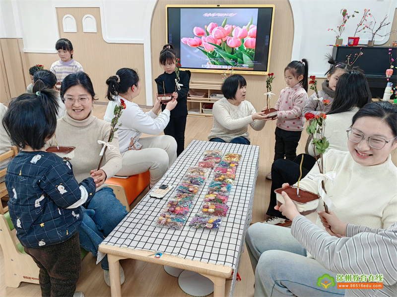 美好的节日应该有惊喜的小礼物伴随,你们看,孩子们用灵巧的小手,在老师的指导下用心制作祝福贺卡、花束、等手工作品呢,他们想通过自己的小巧手为身边的女性长辈送上最纯真最美好的祝福。
