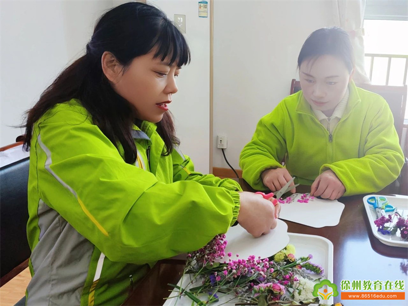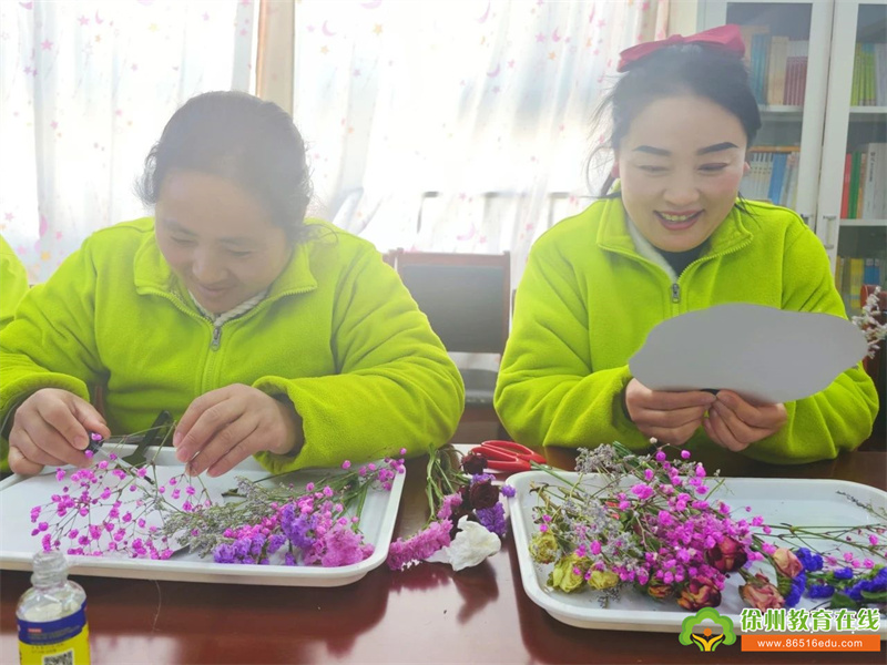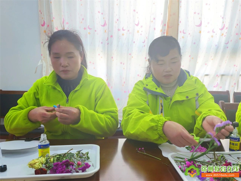 花开永生,留住花儿的色泽与娇艳。老师们用自己灵巧的双手,将色彩各异、形态不同的永生花精心配色,优化组合、仔细粘贴,制作成一件件精美雅致、与众不同、色彩斑斓的精美工艺品。