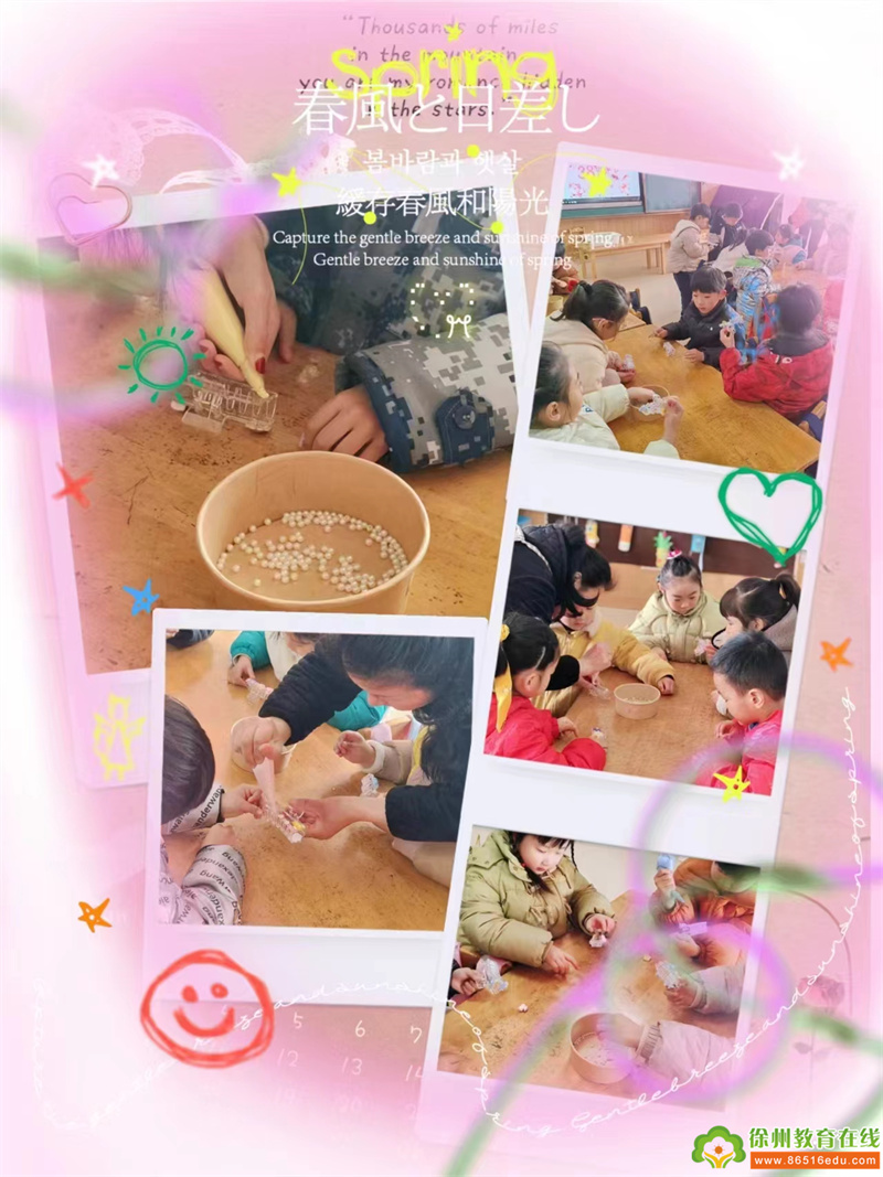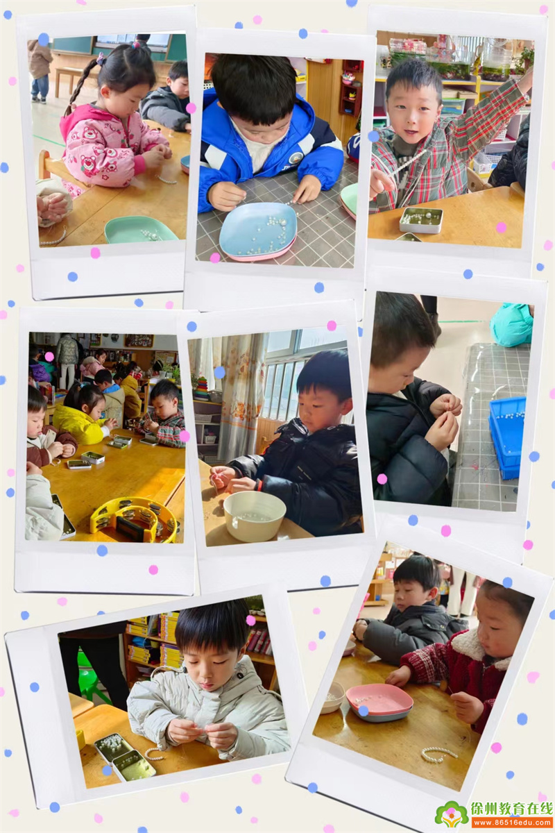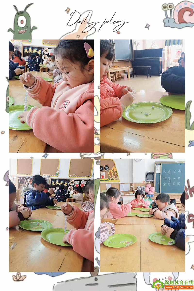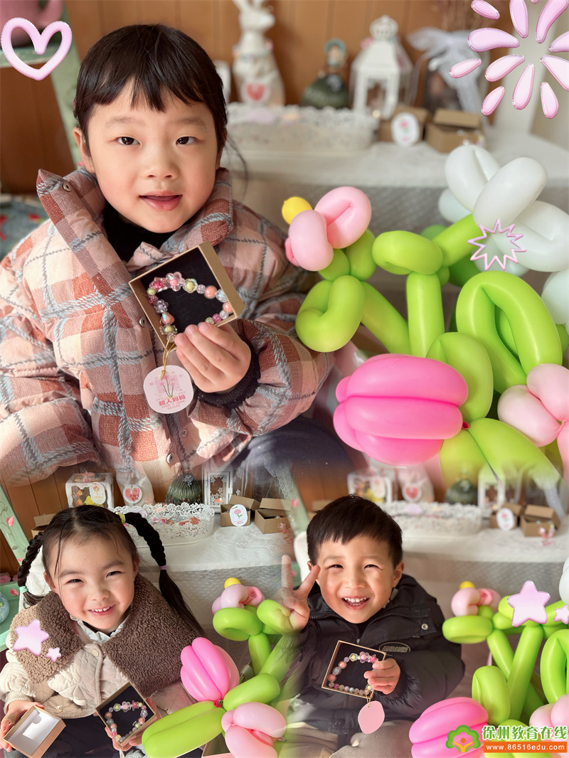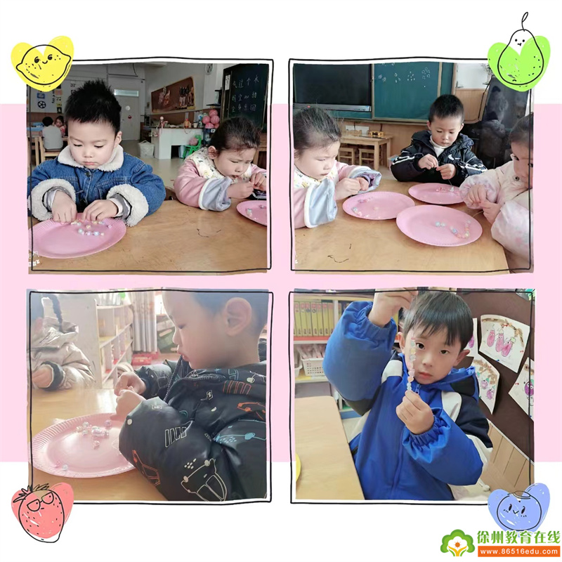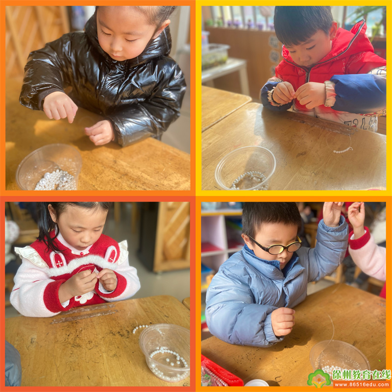 中班组《爱的项链》,宝贝们将一颗颗珍珠里面串成一串珍珠项链,并将满满的爱藏在花束里送给最爱的人。