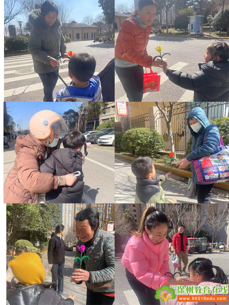 小班组老师带着小朋友们走出幼儿园走进社区,为各行各业的劳动女性献花,感谢他们为社会做出的贡献。这个活动不仅锻炼了孩子们的社交能力,而且从小培养他们的感恩之心,增强自信心!小朋友们从开始的胆小不敢开口到勇敢自信主动表达的过程,让老师们倍感欣慰!看着阿姨奶奶们的开心笑脸,小朋友们也非常自豪,因为他们知道是自己的行动给阿姨和奶奶带来了快乐。