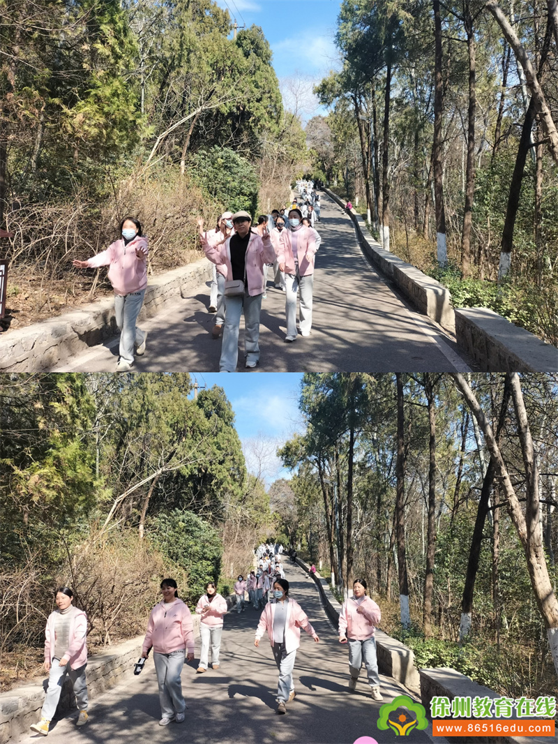 初春云龙山,风光无限好。3月8日下午2点,阳光明媚,登山活动准备就绪。在金文园长的带领下,大家齐步奔向云龙山顶。