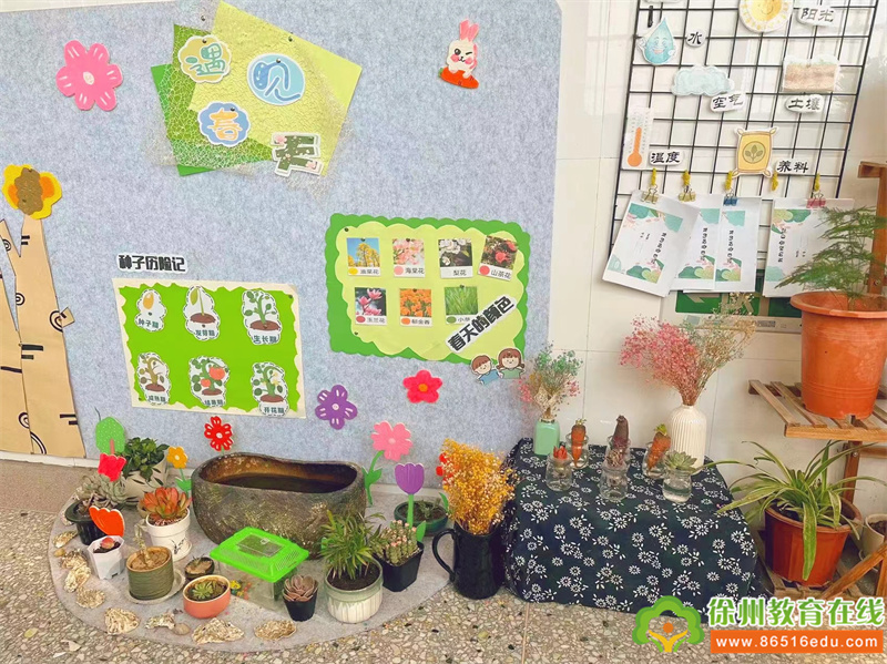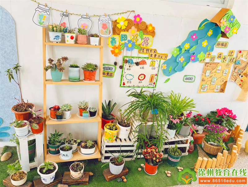 瞧!小小的天地里,老师们将植物角进行了科学合理的设计,土培区、水培区、观察区、欣赏区等,高低错落,绿意盎然,一派生机勃勃的景象。