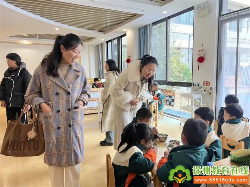 金龙湖小学李校长、语文组教师在金幼吴园长带领下感受了幼儿园的环境和游戏氛围,共同探讨如何结合儿童的身心发展特点,创设适宜的幼小衔接校(园)环境。