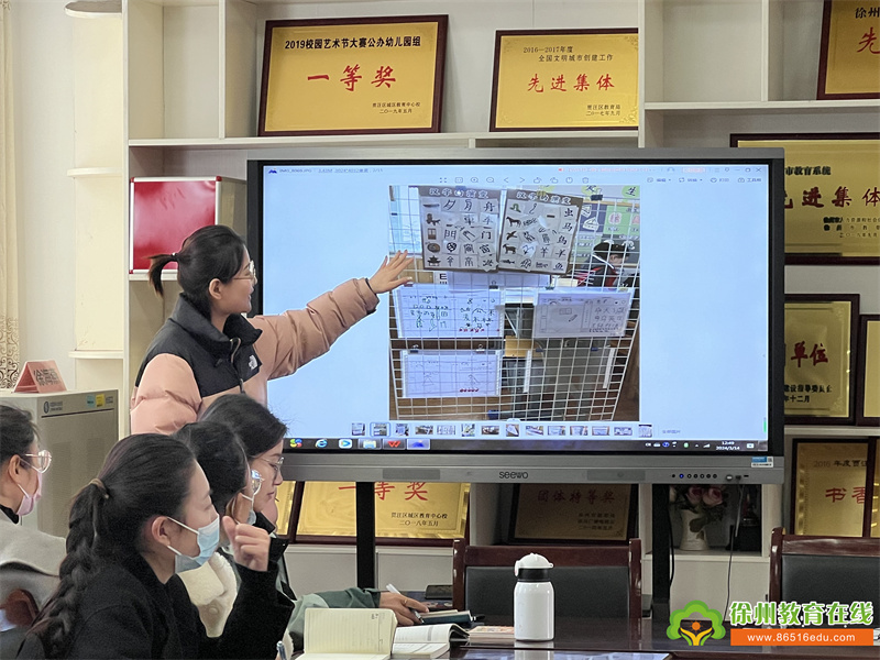 观而不思则怠,学而不研则浅。沙主任将观摩中拍摄的区域照片和老师们一同交流,教师们将自己的所思、所惑积极地提出来,大家展开了激烈的讨论:我们何时需要调整区域环境和游戏材料?调整的依据是什么?区域空间的布局一定要设置为围合、半围合、封闭式的状态吗?材料投放如何支持幼儿学习的持续性发展?