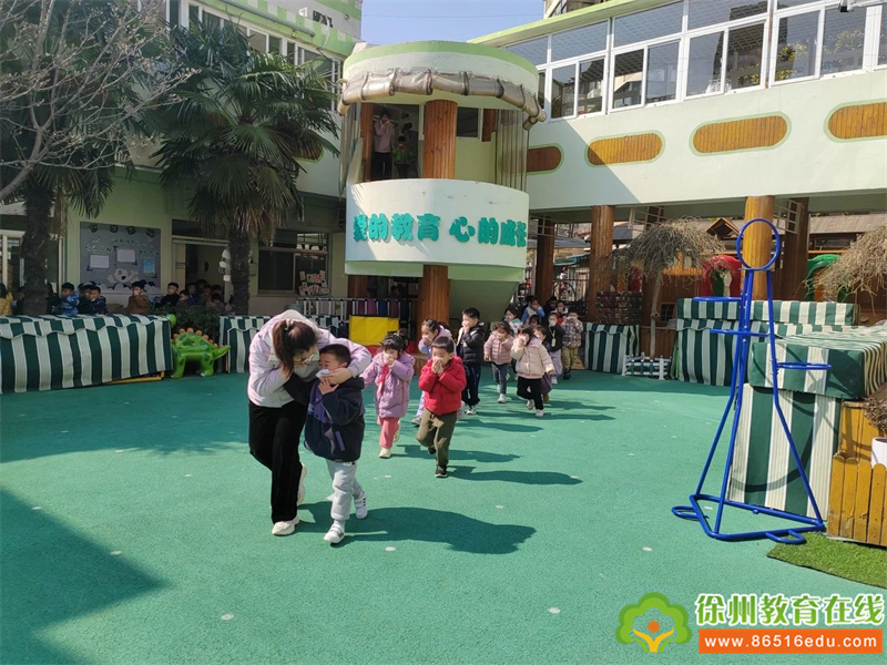 幼儿是自救的主体,徐州市泉山区机关幼儿园组织幼儿开展消防演练活动。演练开始前,王擎主任对消防演练进行安排部署,教师对幼儿进行了安全教育。