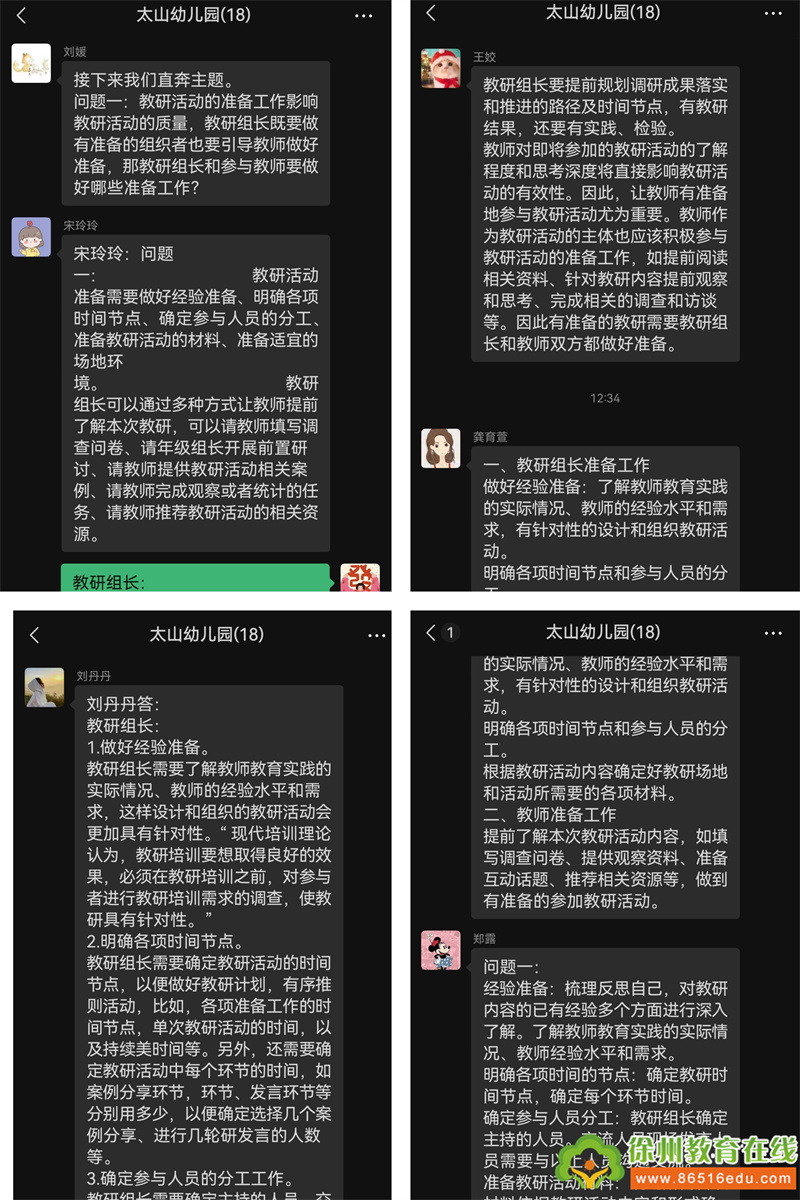 问题一:教研活动的准备工作影响教研活动的质量。教研组长既要做有准备的组织者,也要引导教师做好准备。那教研组长和参与教师要做好哪些准备工作?