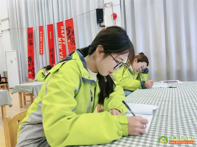 本次考试内容包含婴幼儿卫生和保育常识、学前儿童心理常识、学前教育基本理论与教育实践、幼儿园教师专业标准和学前教育政策法规等多个知识点,教师们通过理论书籍知识和实践经验的整合,时而挥洒笔墨,时而静心思考。专业的解答、前瞻的理念汇聚成一份份满意的答卷。