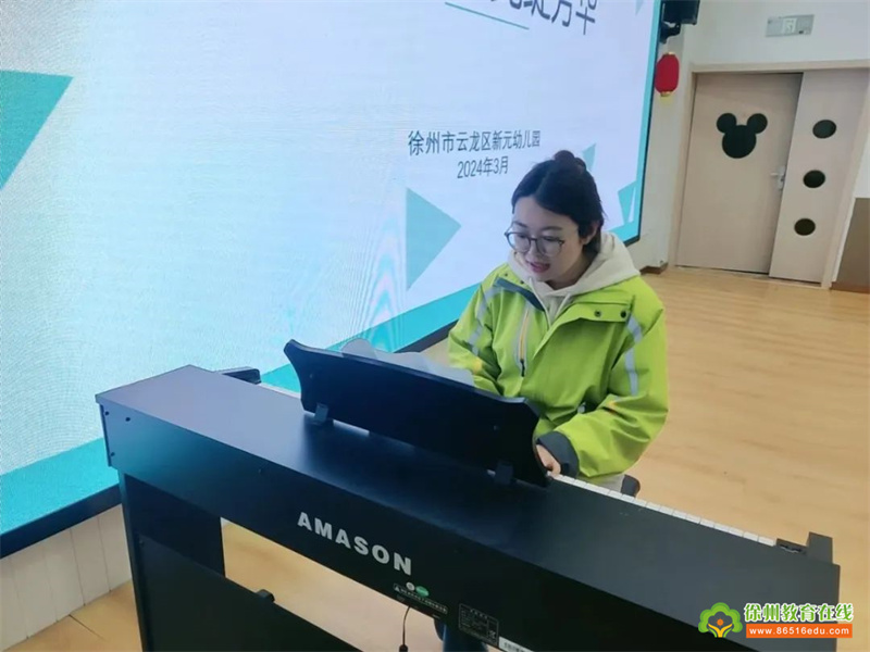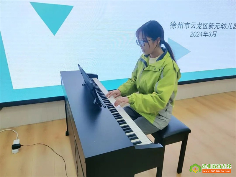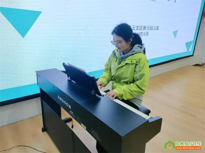 即兴弹唱环节,老师们现场抽签儿歌弹唱,展现老师们良好的现场应变能力及深厚的弹唱能力。