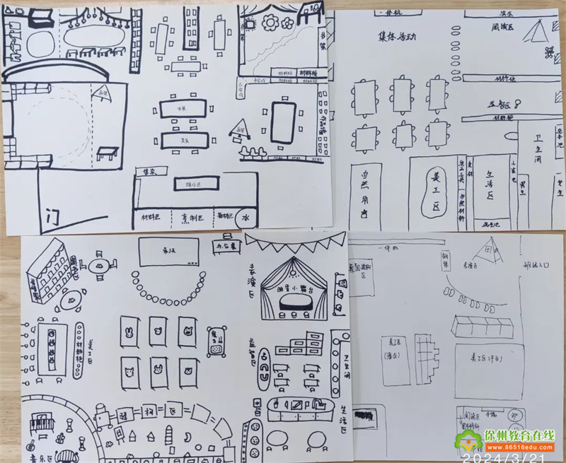 教师班级环境规划是教师基本能力之一,在一笔一画、一勾一描中,教师们尽情展示自己的想象与创造,结合环境规划要求,绘制出了各班的环境规划图。各区域设置做到了“巧、妙、活”,体现了班级区域内涵和教育理念。